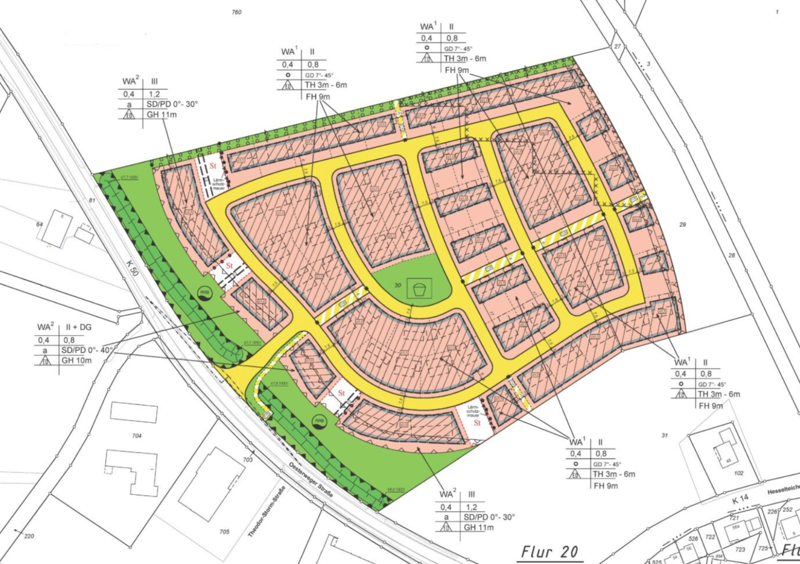 Aktueller Bebauungsplan der Gemeinde (amtliche Unterlagen/Planauszüge)