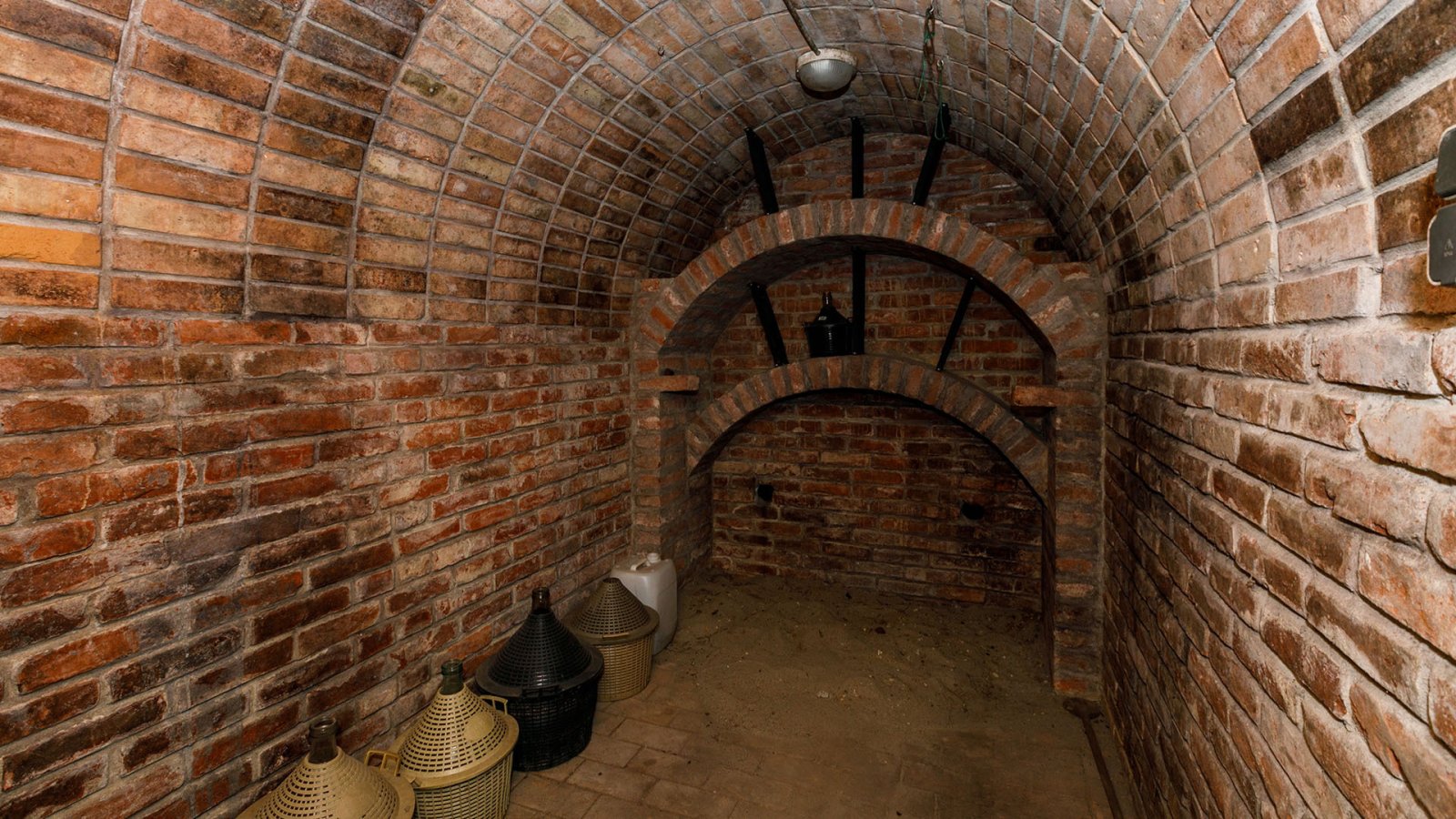 Ein Weinkeller mit Ziegelgewölbe schafft eine besondere Atmosphäre.
