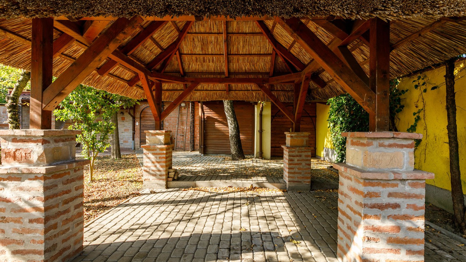 Ein Gartenpavillon lädt zum Verweilen mit Familie und Freunden ein.