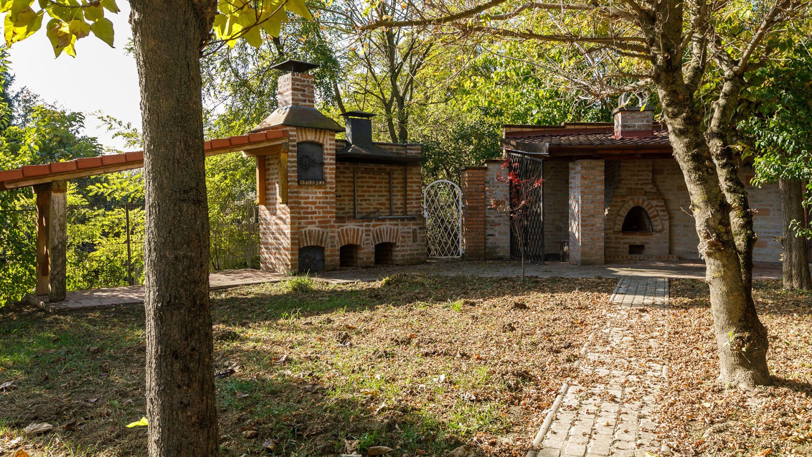 Eine Gartenküche mit Grill bietet die Möglichkeit, kulinarische Abende im Freien zu genießen.