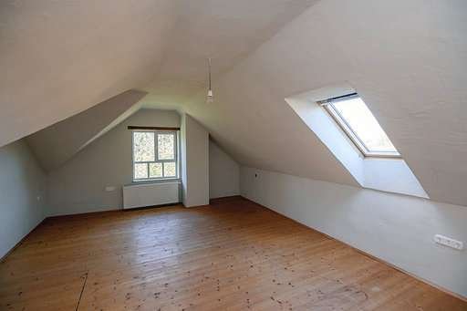 Ein lichtdurchfluteter schöner großer Raum befindet sich über dem Neubau mit Dach- und Giebelfenstern.
