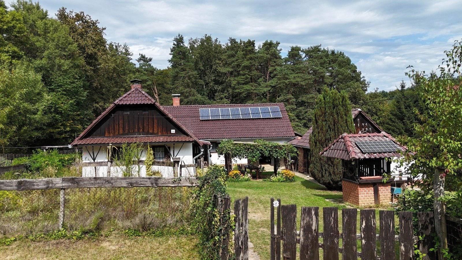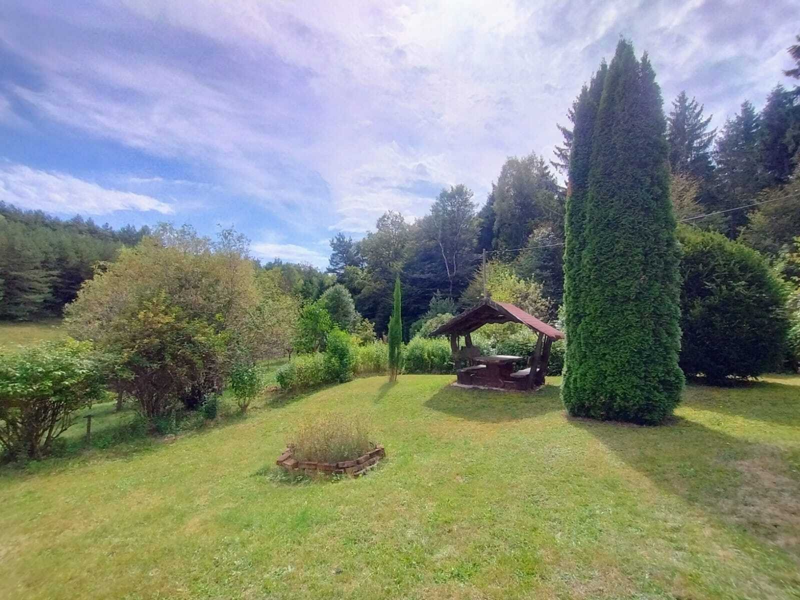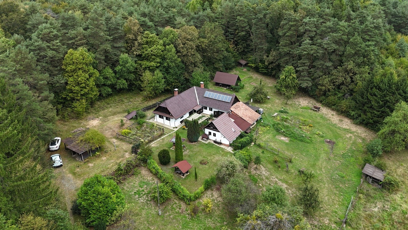 Inmitten einer idyllischen Waldlichtung liegt dieses traditionelle Landhaus – ein Refugium für alle, die Ruhe, Natur und Privatsphäre suchen. Der Grundriss bietet 4 Zimmer mit Wohn-/Essbereich und offener Küche, Badezimmer mit WC sowie ein ausbaufähiges Dachgeschoss. Die Lehm-/Ziegel-Bauweise sorgt für angenehmes Raumklima; Kachelofen, wasserführender Ofen und Kamin liefern behagliche Wärme. Ein separates Gästehaus mit Sommerküche, Bad und Schlafbereich macht das Anwesen perfekt für Freunde, Familie oder Home-Office im Grünen.
