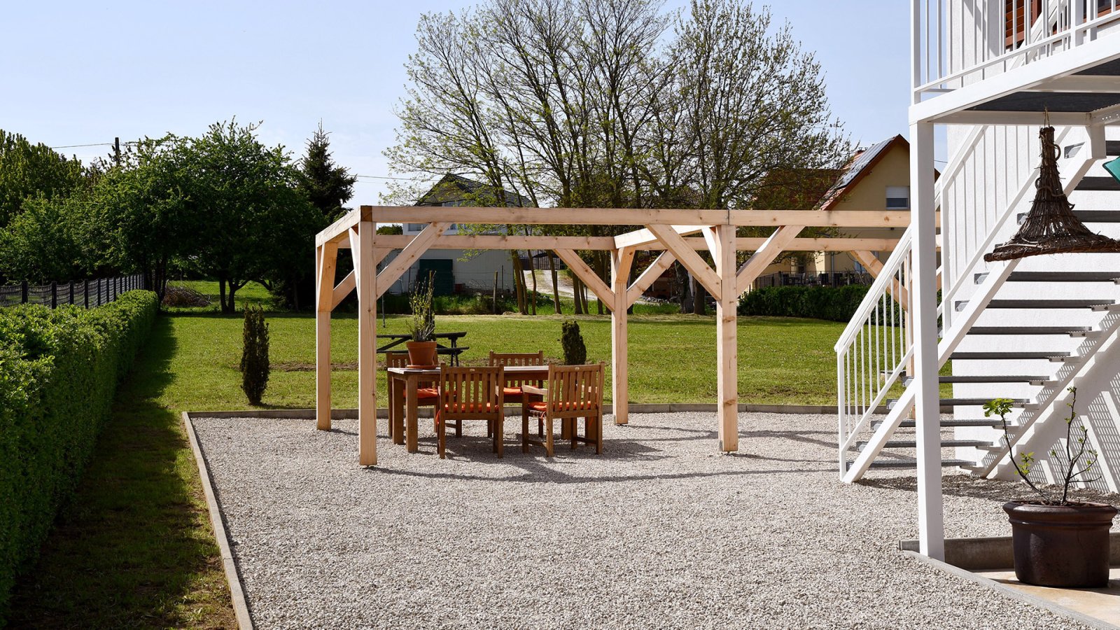 Sonnenterrasse & Pergola, möbliert – sofort beziehbar