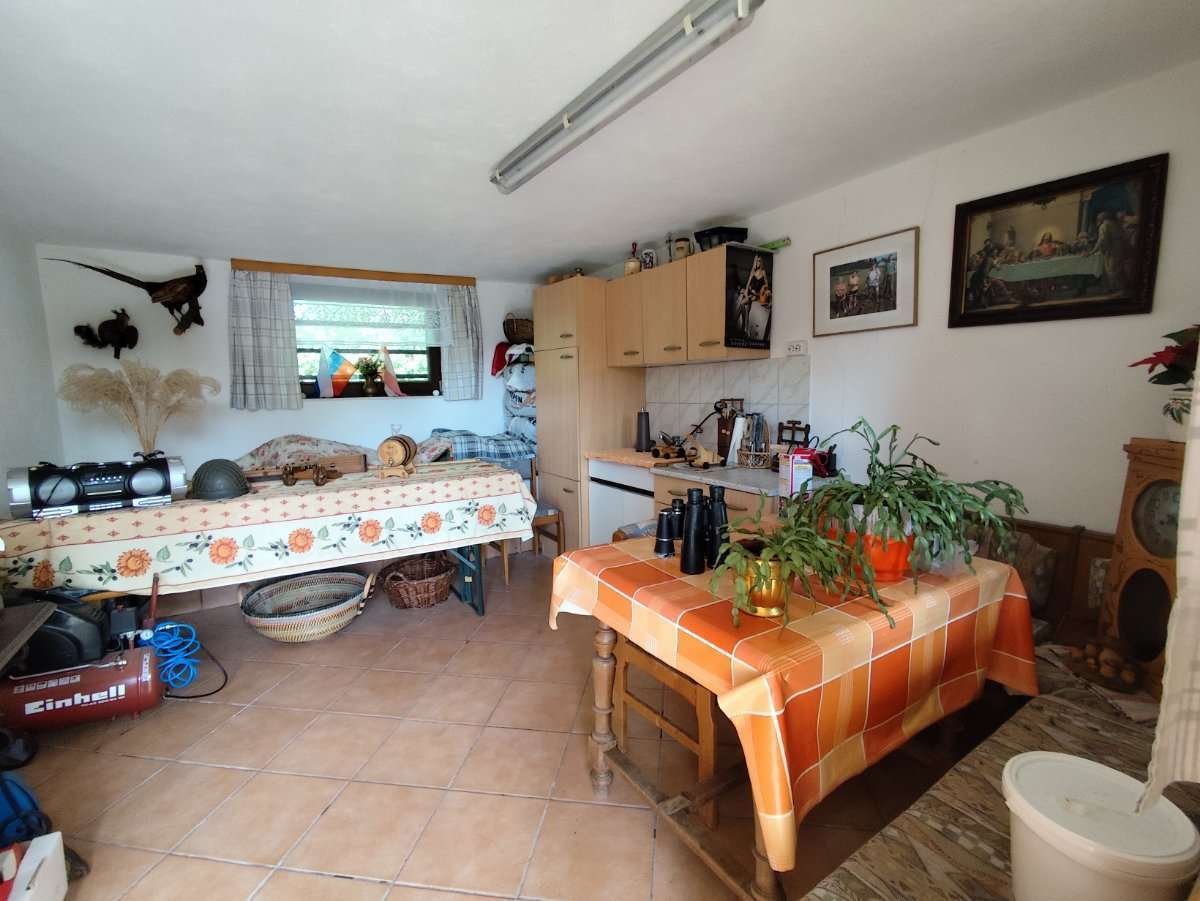 Zu den Nebengebäuden gehören eine Sommerküche, eine Garage, ein Lagerraum mit separater Toilette. Durch Umbau oder Modernisierung können daraus zusätzliche Wohn- oder Gemeinschaftsräume entstehen. Der separate Werkstattbereich ist mit Drehstrom ausgestattet, sodass Werkzeuge, Sägen oder andere Maschinen problemlos betrieben werden können. Das Abwasser wird in eine betonierte Sammelgrube geleitet. (Anschluss an Kanalisation und Erdgasnetz besteht in der Gemeinde nicht.)