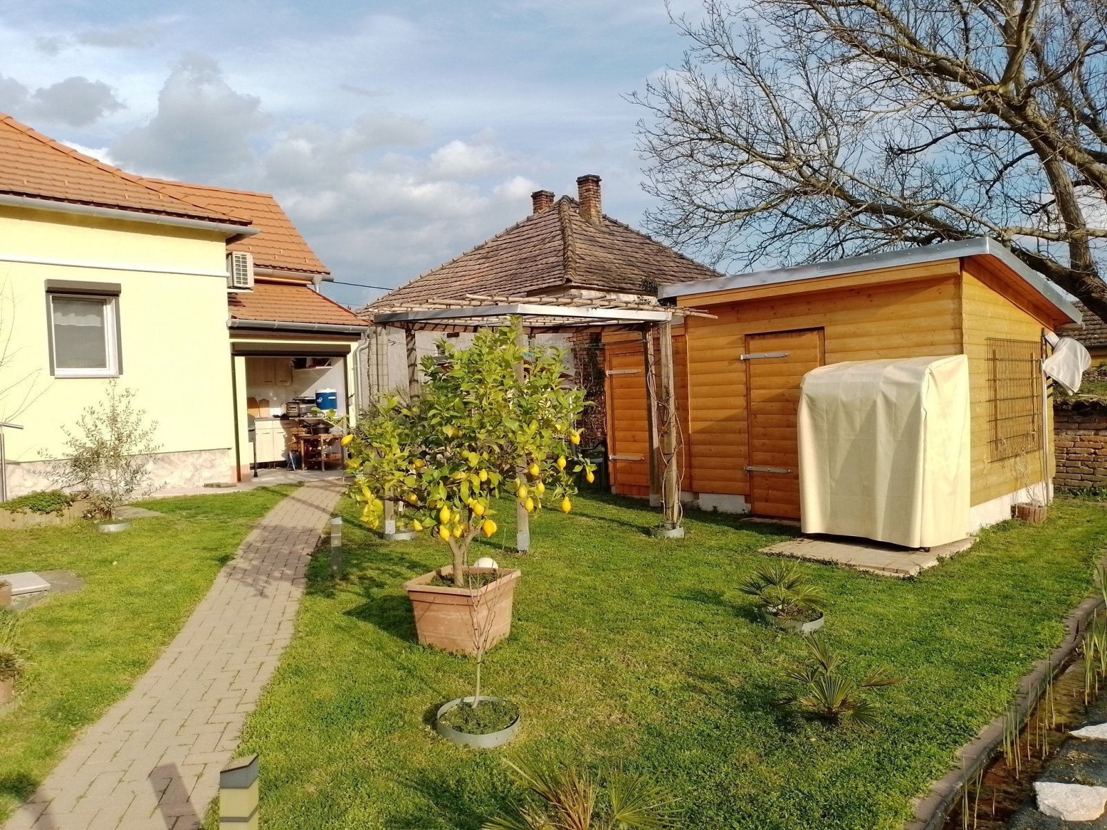Willkommen in Kistótfalu, einem ruhigen Dorf im Villány-Weinland – hier steht dieses gepflegte Einfamilienhaus auf einem großzügigen Grundstück mit Garten-Oase. Der Grundriss ist alltagstauglich: Wohnzimmer, 2 Schlafzimmer, offene Küche mit Speisekammer, Technikraum, Wintergarten mit Zugang zur Terrasse und zwei moderne Bäder (Dusche/Wanne, WC). Die Sommerküche (mit Kraftstrom) und die Garage mit Werkstatt erweitern den Nutzwert – perfekt für Hobby, Handwerk und Self-Care im Grünen. Klimaanlagen, Kaminöfen sowie die neue Gastherme bieten effizienten Ganzjahreskomfort; die PV-Anlage (9,84 kWp) senkt die Stromkosten. Highlight im Garten: die ~100 m² Schwimmteich-Anlage – dein privater Natur-Wellnessplatz.