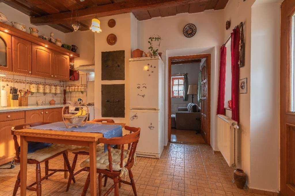 Im vorderen Teil des Hauses befindet sich ein offener Eingang, eine offene Terrasse, im Wohnbereich ein geschlossener Eingang, 2 Zimmer, Küche, Holzbalkendecken in originalem, tadellosem Zustand, Flur, Bad-WC-Räume, Wohnnutzfläche 70 m2.
