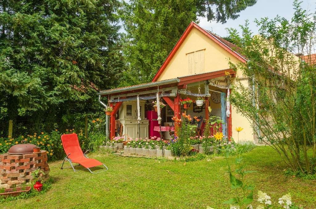 Am Ende des Hauses befindet sich eine 15 m2 große Sommerküche, die mit einer versenkbaren Plane ausgestattet ist. Das gesamte Grundstück ist mit Rasen bepflanzt, mit Obstbäumen, mehrjährigen Sträuchern und Blumen, die nicht anspruchsvoll in der Pflege sind. Das Grundstück ist insgesamt 2550 m2 groß und verfügt über einen 4,5 m2 großen Gartengeräteschuppen, einen überdachten Carport, ein elektrisches Tor, einen gegrabenen Ringbrunnen mit Pumpe.