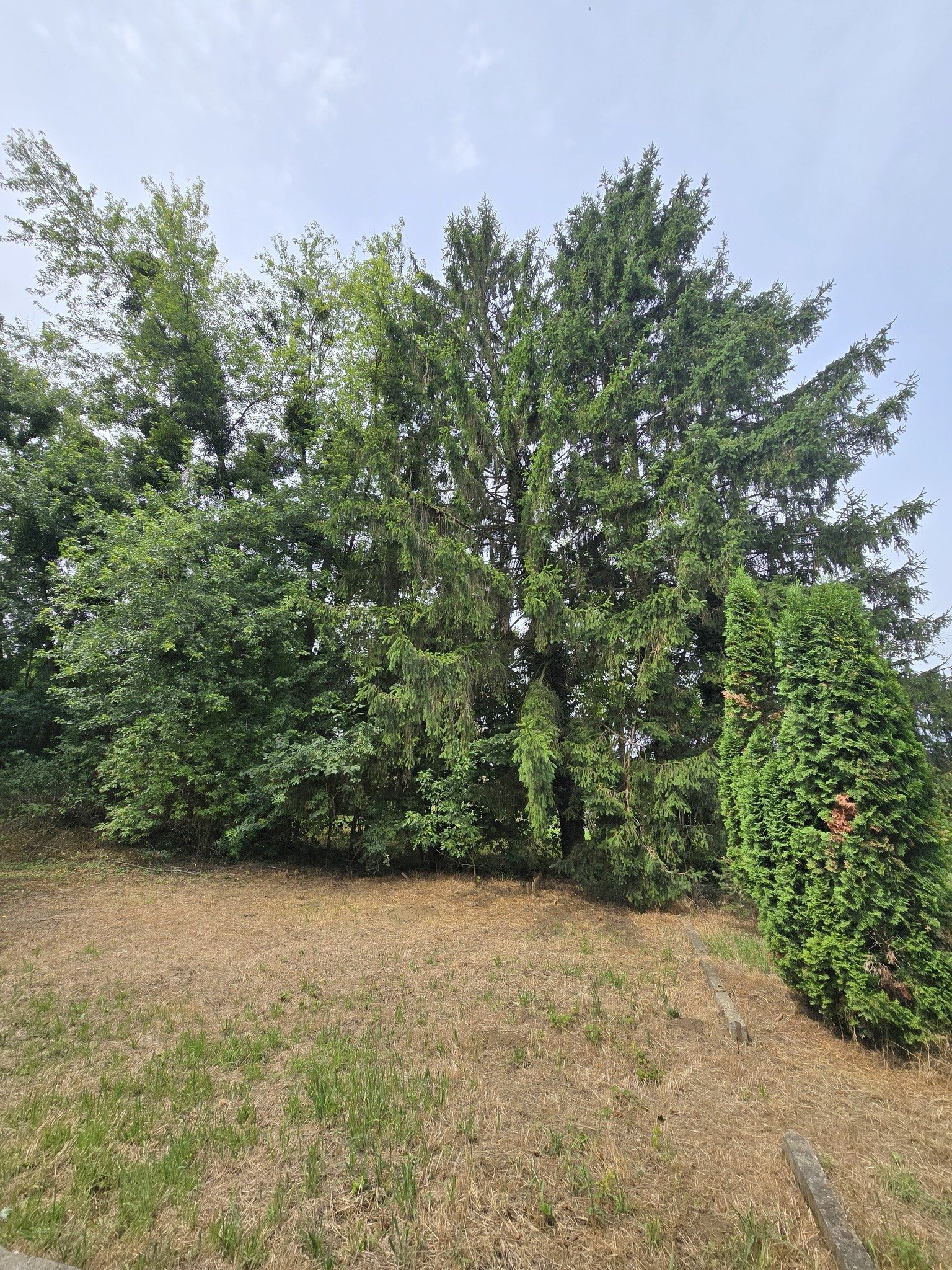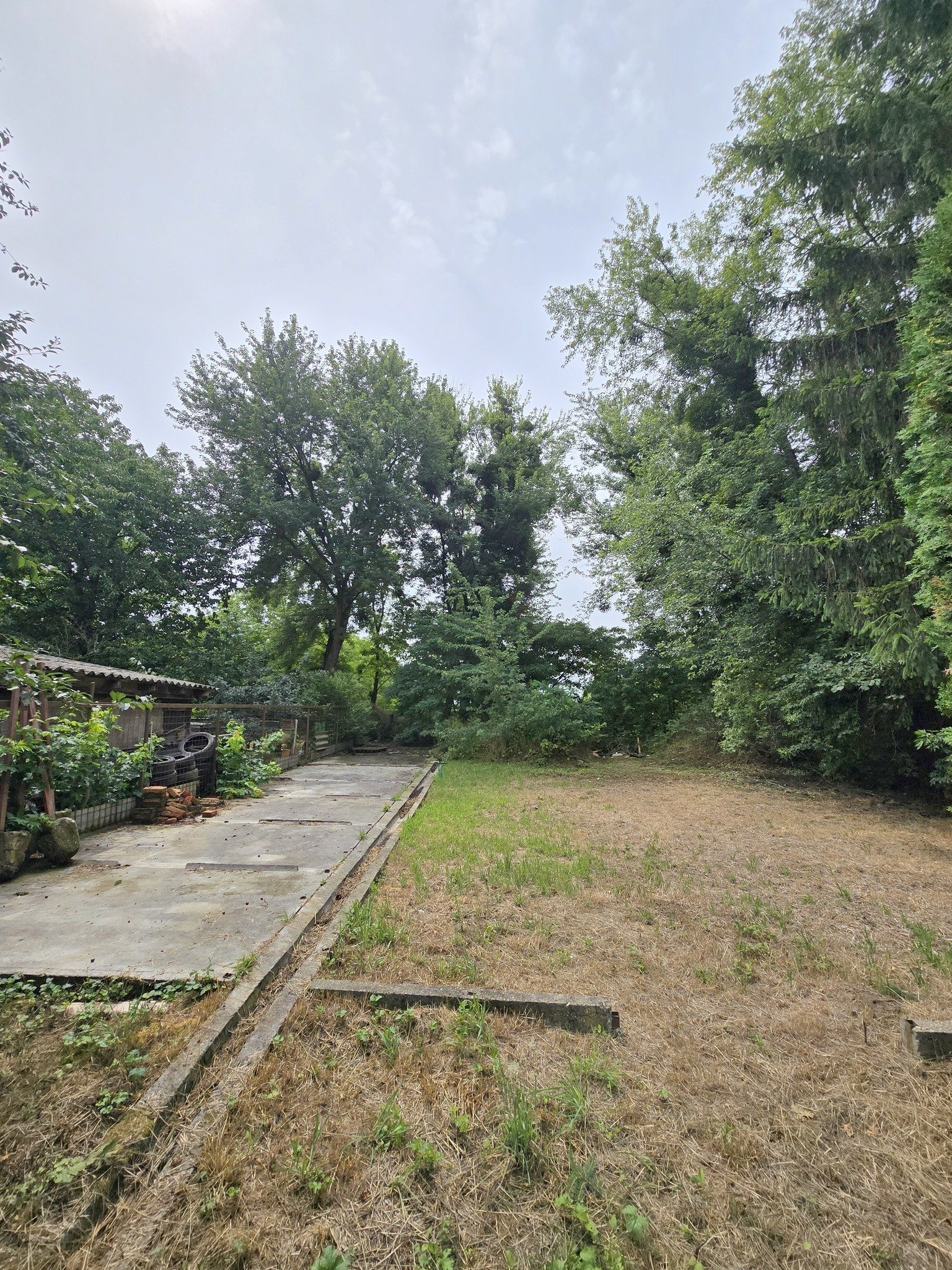 Am Ende des Grundstücks befindet sich ein gegossener Betonfundament (früher als Hundezwinger genutzt)