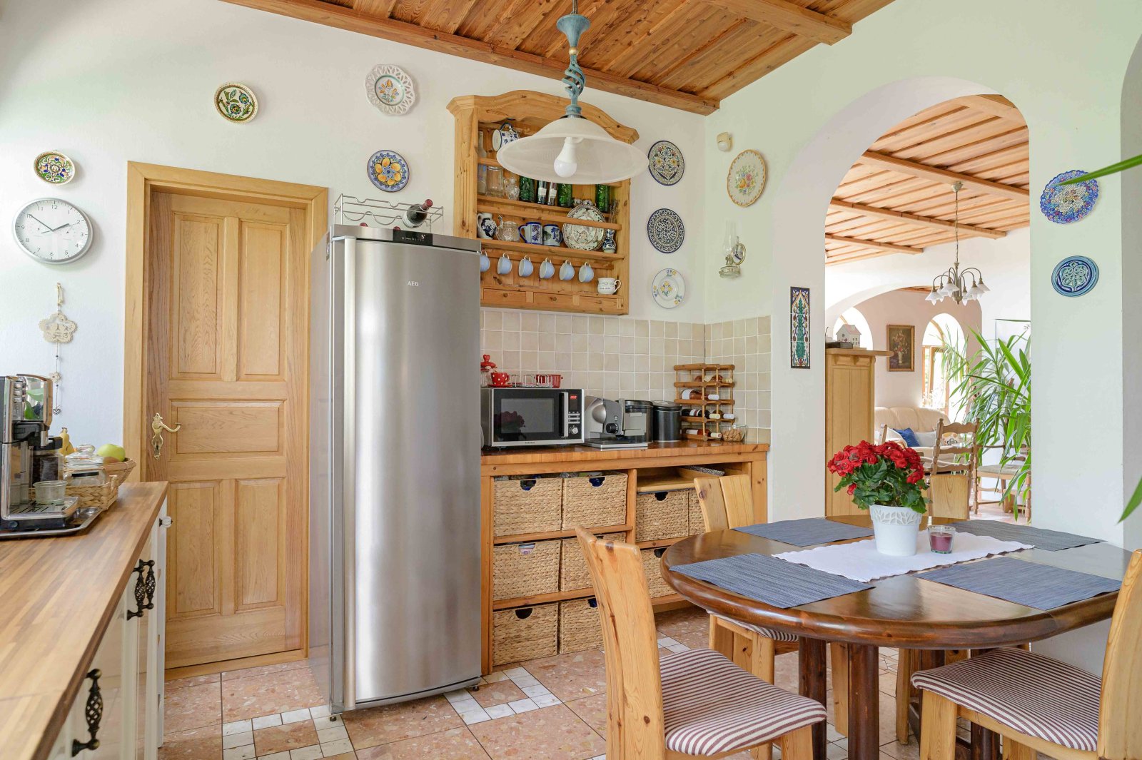 Das gesamte Gebäude verfügt über individuell regulierbare Fußbodenheizung und einen Kaminofen.