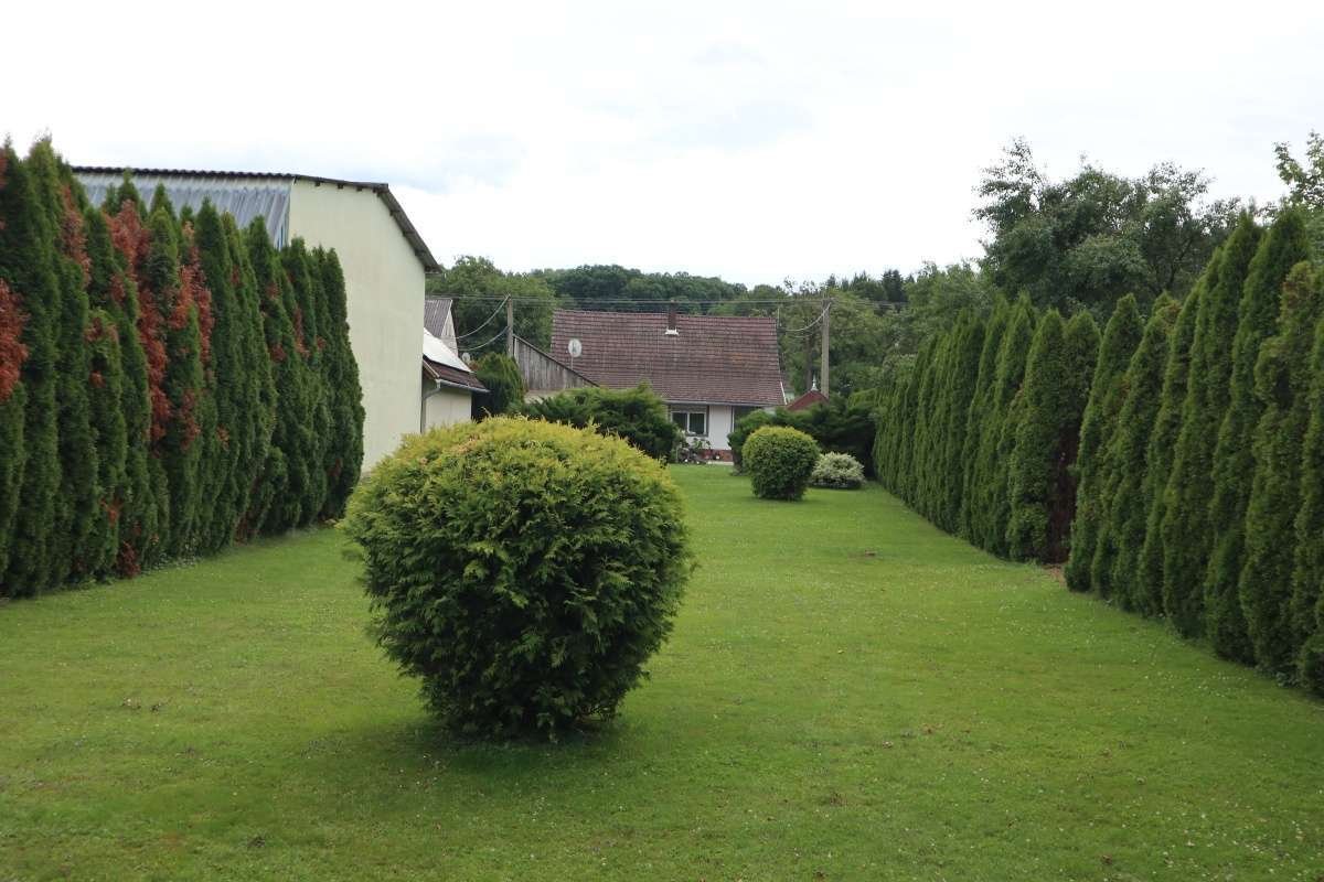 Im hinteren Teil des Grundstücks befindet sich ein kleines Gartentor, das zu einem Feldweg führt. Dahinter beginnen Ackerflächen und etwa 1 km entfernt fließt der Fluss Raab.