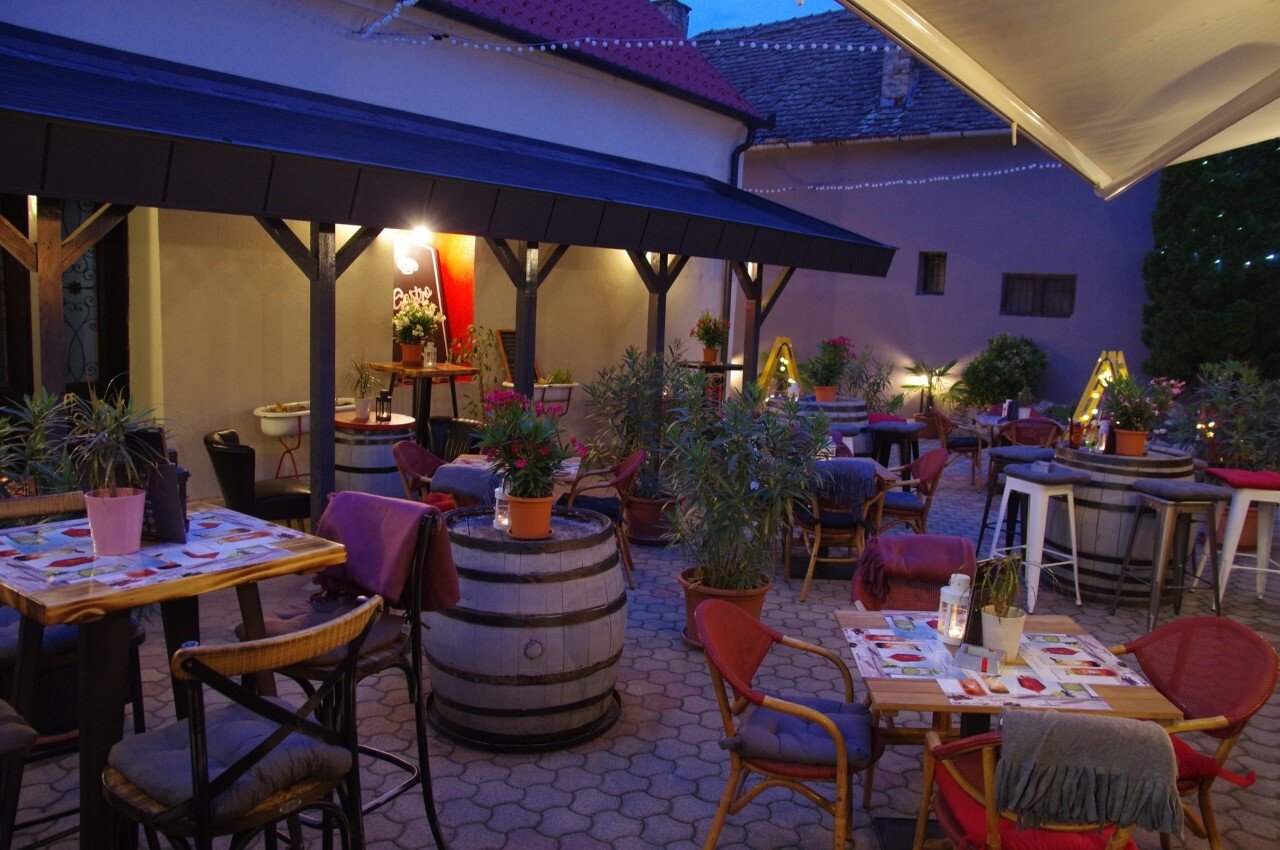 Derzeit sind der Restaurantbereich und das Ladenlokal an der Straße belegt und könnten mit einem Mieter weitergeführt werden. Der Innenhof, der Weinkeller und der hintere Bereich stehen momentan leer.