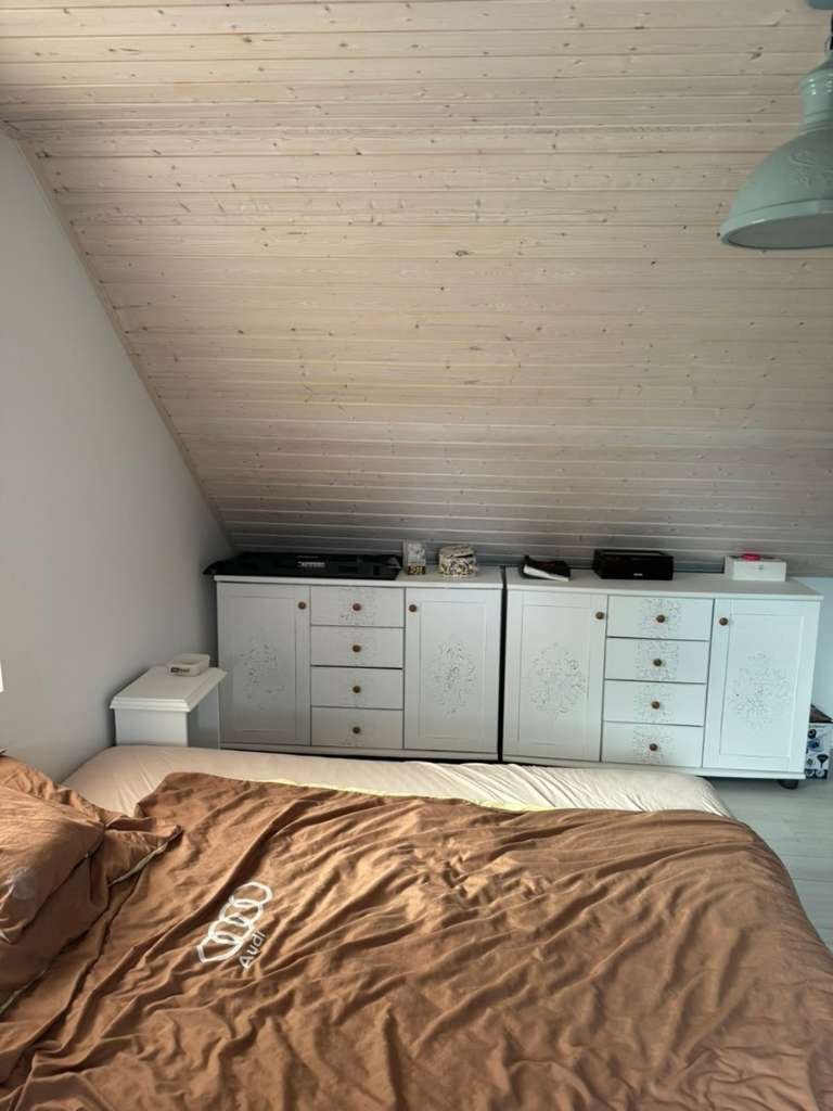 Der Dachgeschossteil wurde ausgebaut. Es wurde eine komplette Nachdämmung des Unterbodens durchgeführt, erneuert und erweitert.