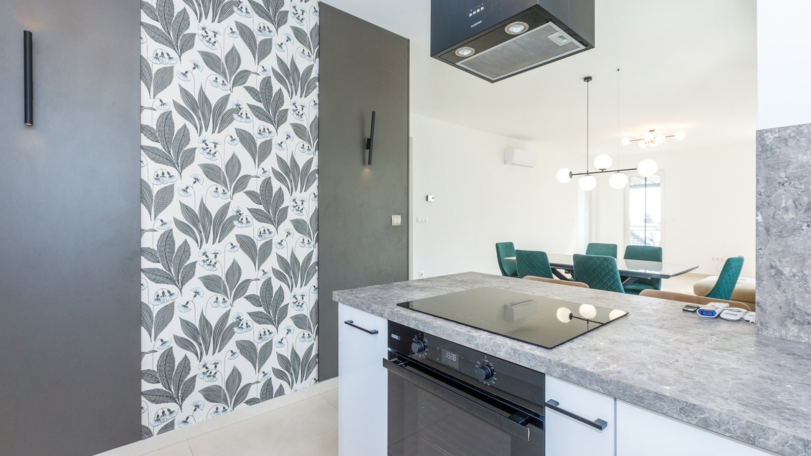 Die Einbauküche ist nicht nur funktional, sondern auch einladend und ideal für gesellige Kochabende.