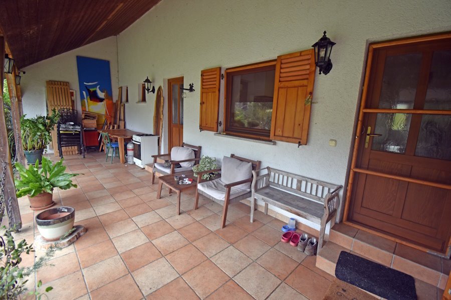 - vom Wohnzimmer öffnet sich außerdem die 10 m2 überdachte, gemütliche Terrasse mit einem schönen Ausblick auf den Garten.