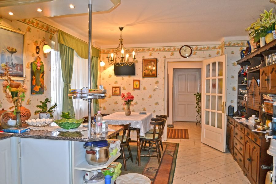 - Küche mit Essraum und mit bedeckter Terrasse.