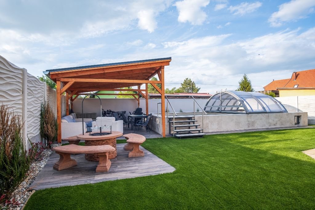 In Balatonkeresztúr, im Bezirk Somogy am Südufer des Balaton, nur wenige hundert Meter von der längsten Seebrücke des Balaton und dem kostenlosen Strand entfernt, bieten wir Ihnen eine hochwertige Familienvilla in einer familienfreundlichen Grünanlage.
