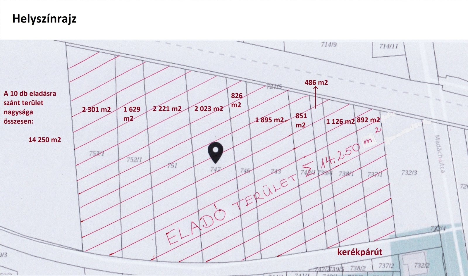 Die Grundstücksgröße beträgt 14.250 m². Ein Teil des Grundstücks kann ebenfalls erworben werden.