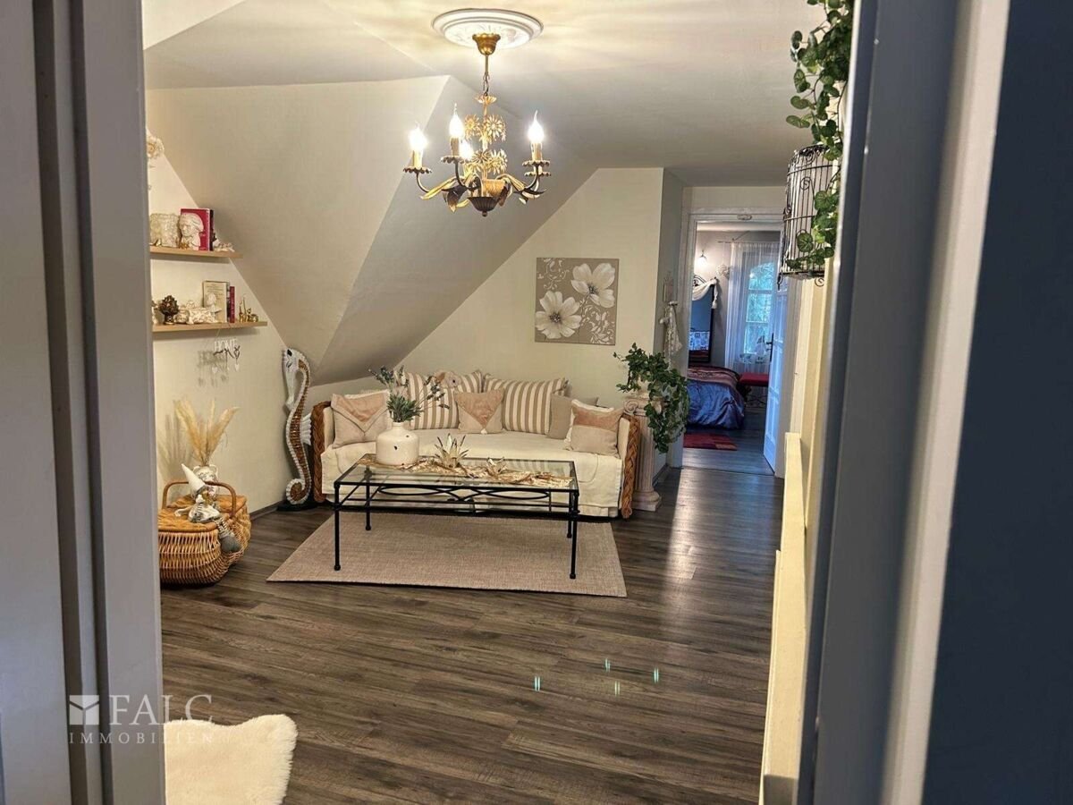 Bereits beim Betreten des Hauses spürt man die besondere Atmosphäre: hell, romantisch und verspielt – mit viel Liebe zum Detail aufwendig renoviert und saniert. Große Fensterflächen eröffnen traumhafte Blicke in den blumenreich angelegten Garten und schaffen eine harmonische Verbindung zwischen Innen- und Außenbereich.
