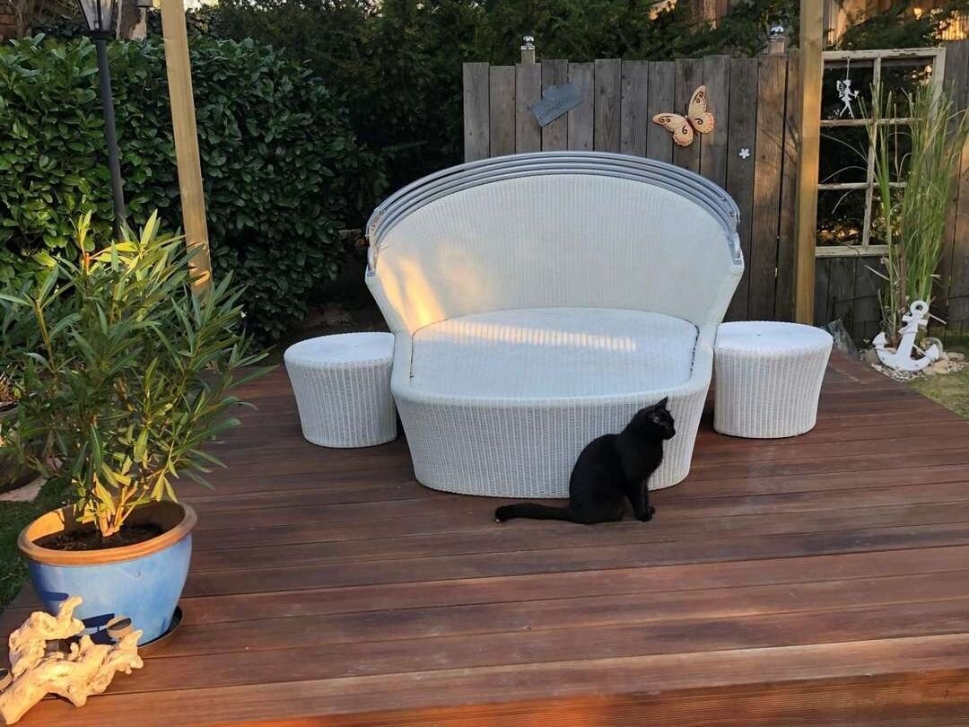 Ein absolutes Highlight dieses romantischen Gartenparadieses ist das neu errichtete, isolierte Beachhaus. Zwischen Strandhaus und Pool wurde ein kleiner Sandstrand mit sanften Dünen angelegt – ergänzt durch Palmen und einen Olivenbaum. Hier entstehen unvergessliche Sommerabende mit Freunden: barfuß im Sand, mit einem Glas Wein an der Außenküche, während die Sonne langsam untergeht.