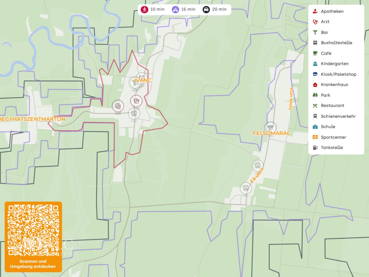Die Immobilie liegt in einer angenehm ruhigen, dörflich geprägten Umgebung in Ivánc und bietet kurze Wege für den Alltag sowie eine entspannte Lebensqualität. Für Besorgungen und Erledigungen sind wichtige Anlaufstellen in der Nähe: Die Posta ist in ca. wenigen Gehminuten erreichbar, ebenso eine Bushaltestelle in ca. wenigen Gehminuten, die eine unkomplizierte Anbindung in die umliegenden Orte ermöglicht.