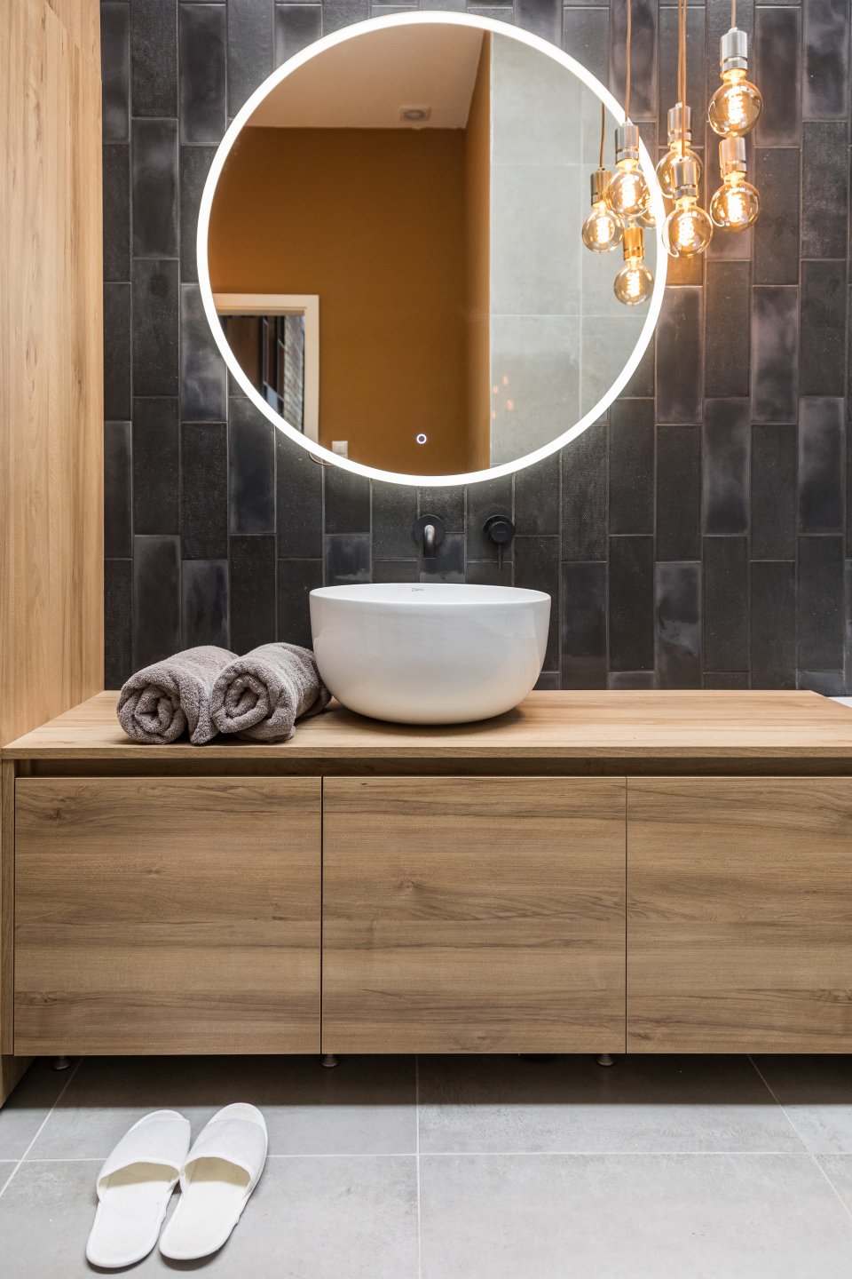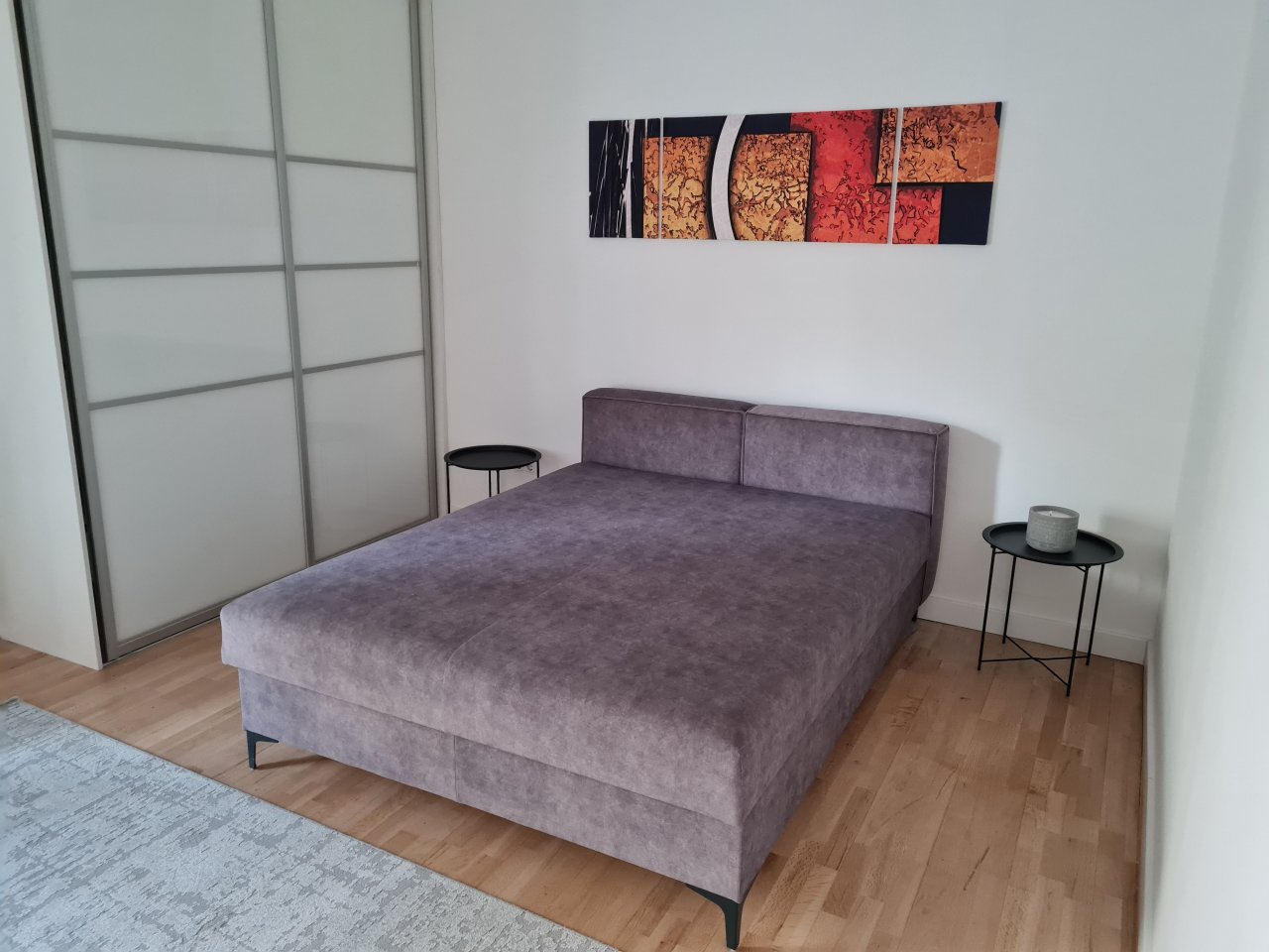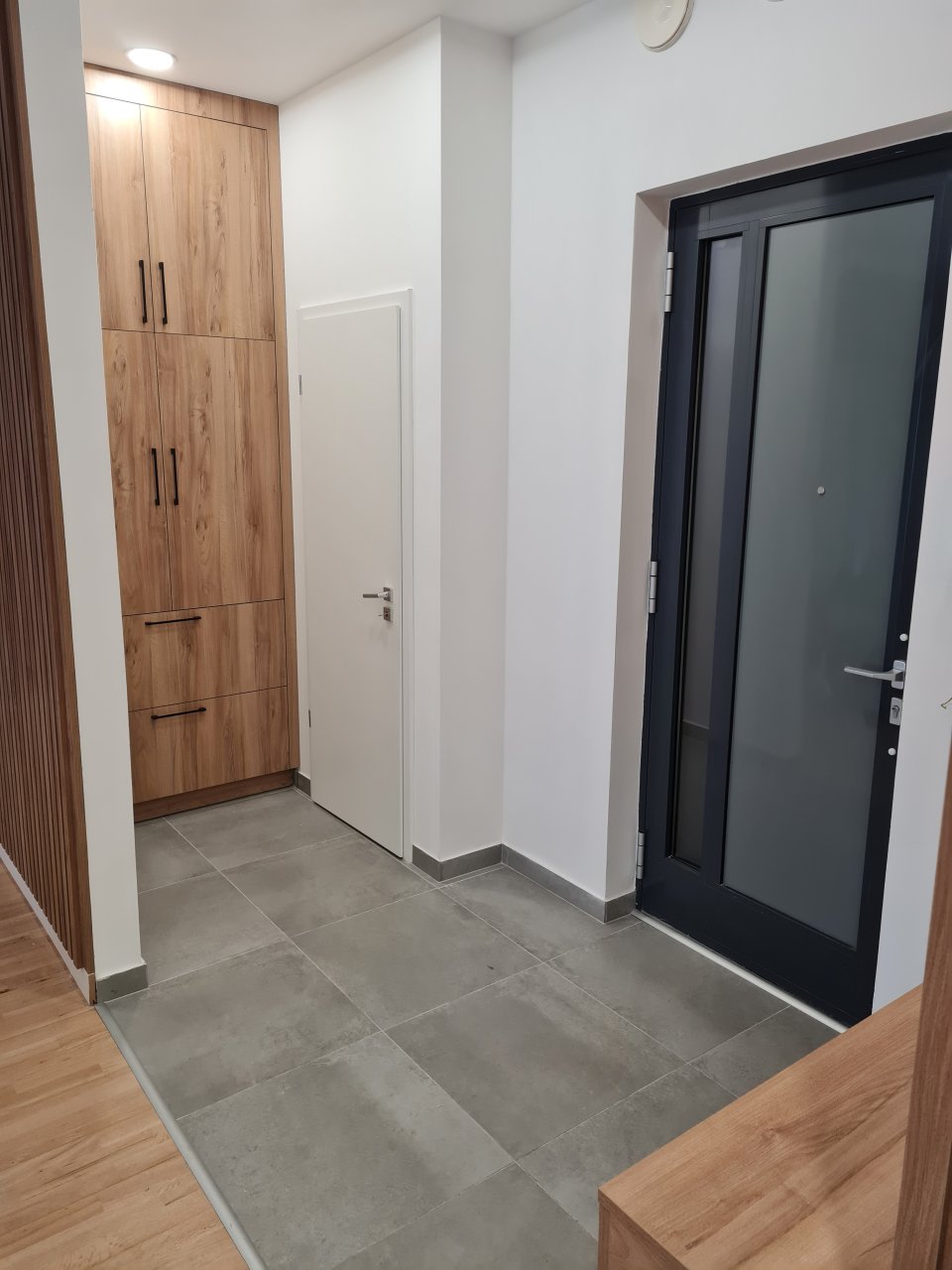 We enter the apartment through a pleasant entrance area, and a spacious, bright living room with an open kitchen opens up to us, from which there are two separate bedrooms, a walk-in closet, a bathtub bathroom with laundry room, a toilet and a guest toilet. Working at home is supported by a small study.