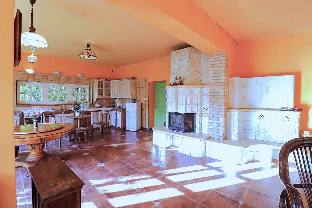 - Heated with a huge tiled stove in the middle of the house, newly lined chimneys, the central unit is in the basement