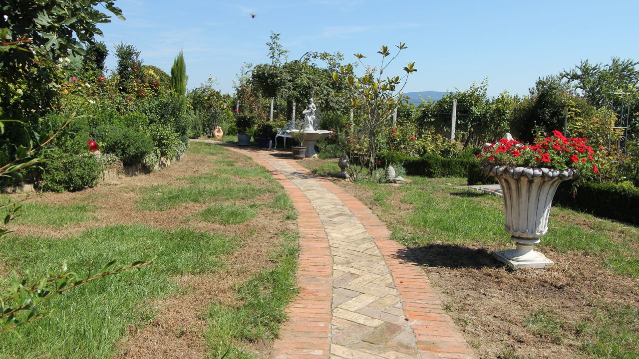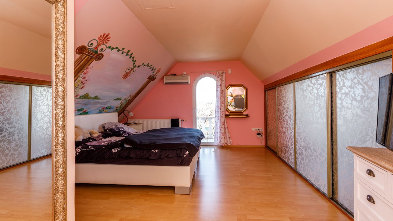 On the living level there is a living-dining room with circular panoramic terraces, on the upper floor there are romantic rooms with bathrooms and terraces. The house also has gas central heating and a tiled stove.