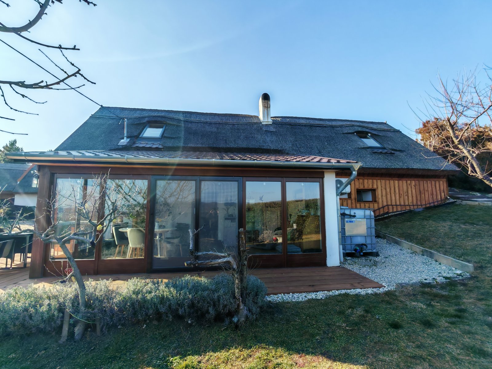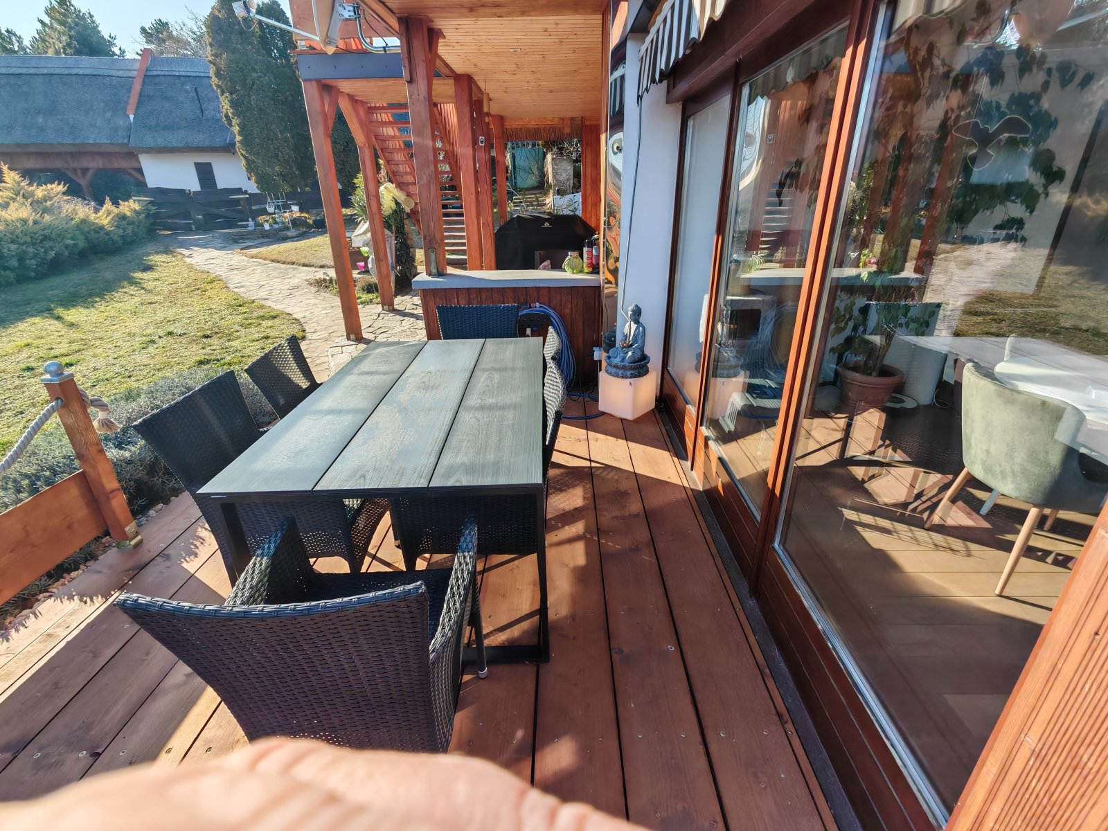 Offered is a lovingly renovated brick-stone-clay house with a new thatched roof, a wonderful panoramic view of Lake Balaton and the surrounding nature reserve. This CO2-neutral construction in particular, with its 1 m thick surrounding walls and the exclusive use of natural materials, offers a unique indoor climate!