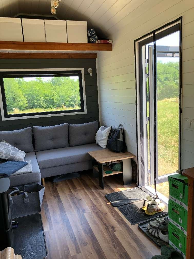 The tiny house is still in use but is now for sale.Viewing and collection appointments by arrangement.Removal at your own expense and responsibility.Please note that the tiny house is located in nature and requires a suitable vehicle and suitable weather conditions (no rain and dry ground)..