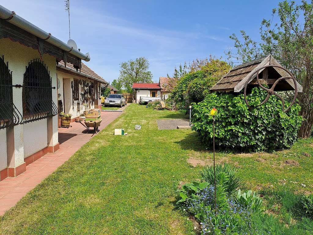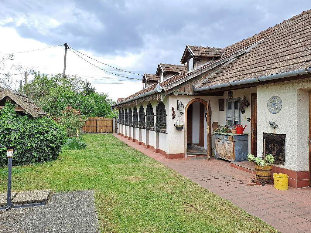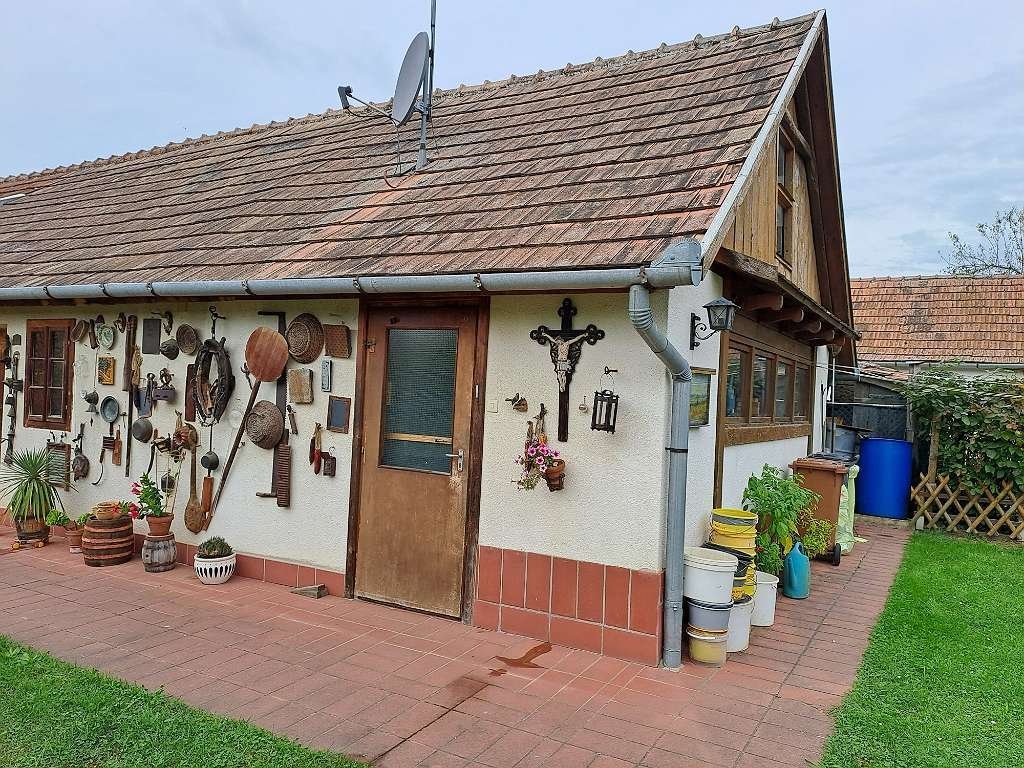 This classic arcade house combines the charm of western Hungarian architecture with solid construction and everyday amenities. The bright living/dining area with a large tiled stove forms the heart of the house; two cozy bedrooms, a bathroom with shower, and a fitted kitchen complete the floor plan. Outside, you'll find an easy-care garden with a terrace – perfect for breakfast in the morning sun – as well as three outbuildings for hobby, workshop, or storage. The electric gate and fence ensure privacy and comfort for daily use.