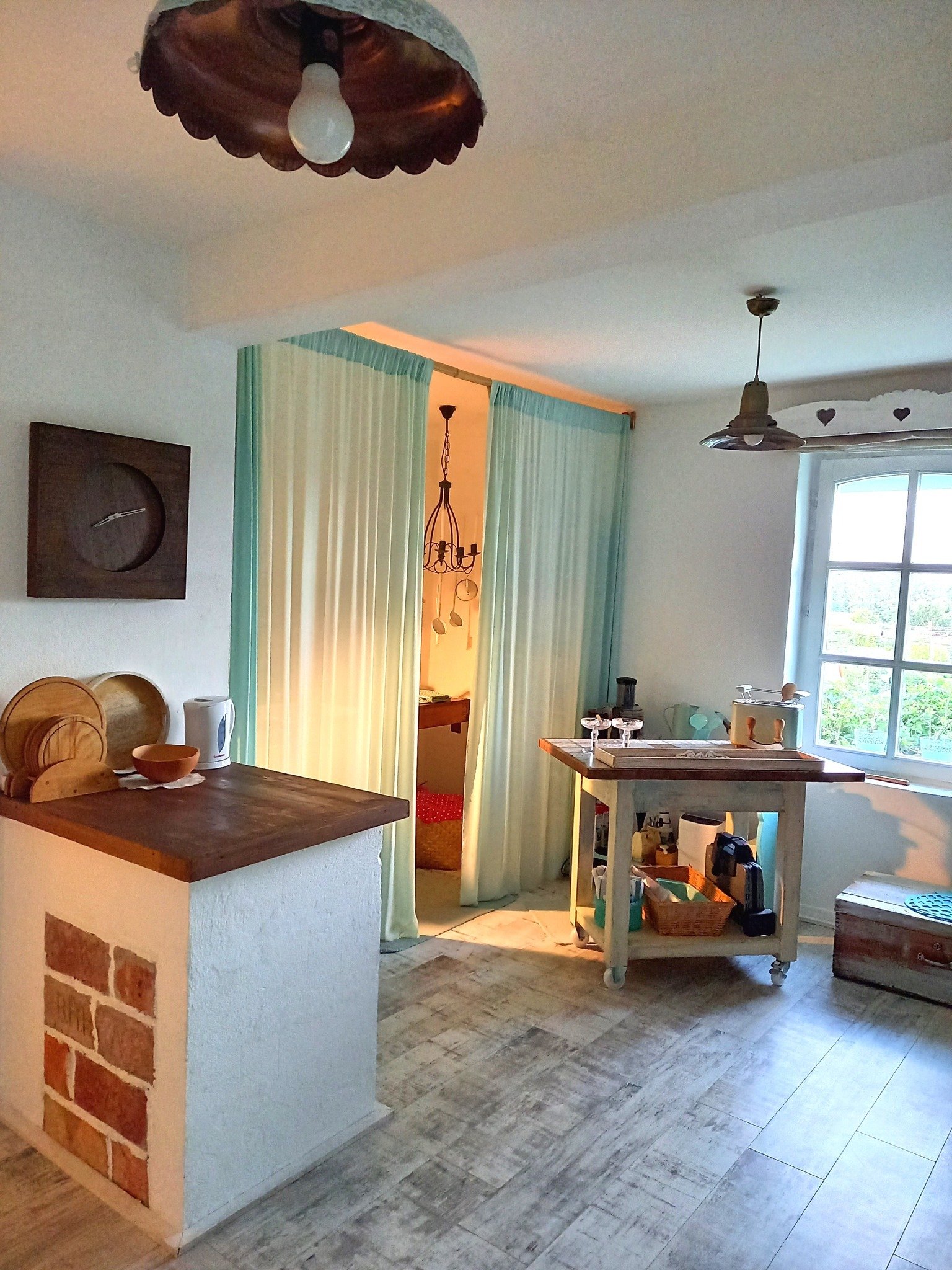 This lovingly renovated holiday home combines a rural ambiance with practical amenities – ideal for immediate occupancy or for holiday rentals. The welcoming floor plan with an open-plan kitchen, living/dining area, 2 bedrooms, and a bathroom with natural light creates a bright and tidy atmosphere. The fireplace ensures cozy evenings; on the terrace, you can enjoy the view of the large panoramic property. The house will be handed over furnished (including a washing machine, refrigerator, beds) – perfect as a turnkey solution.