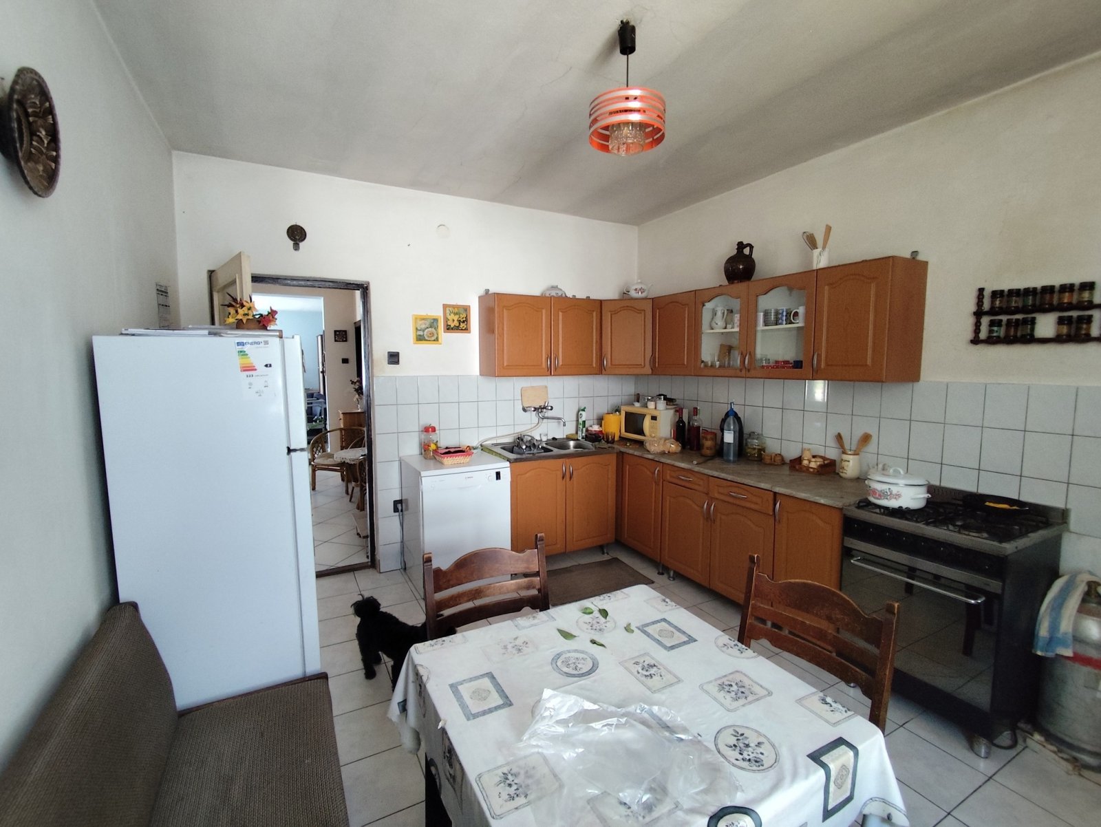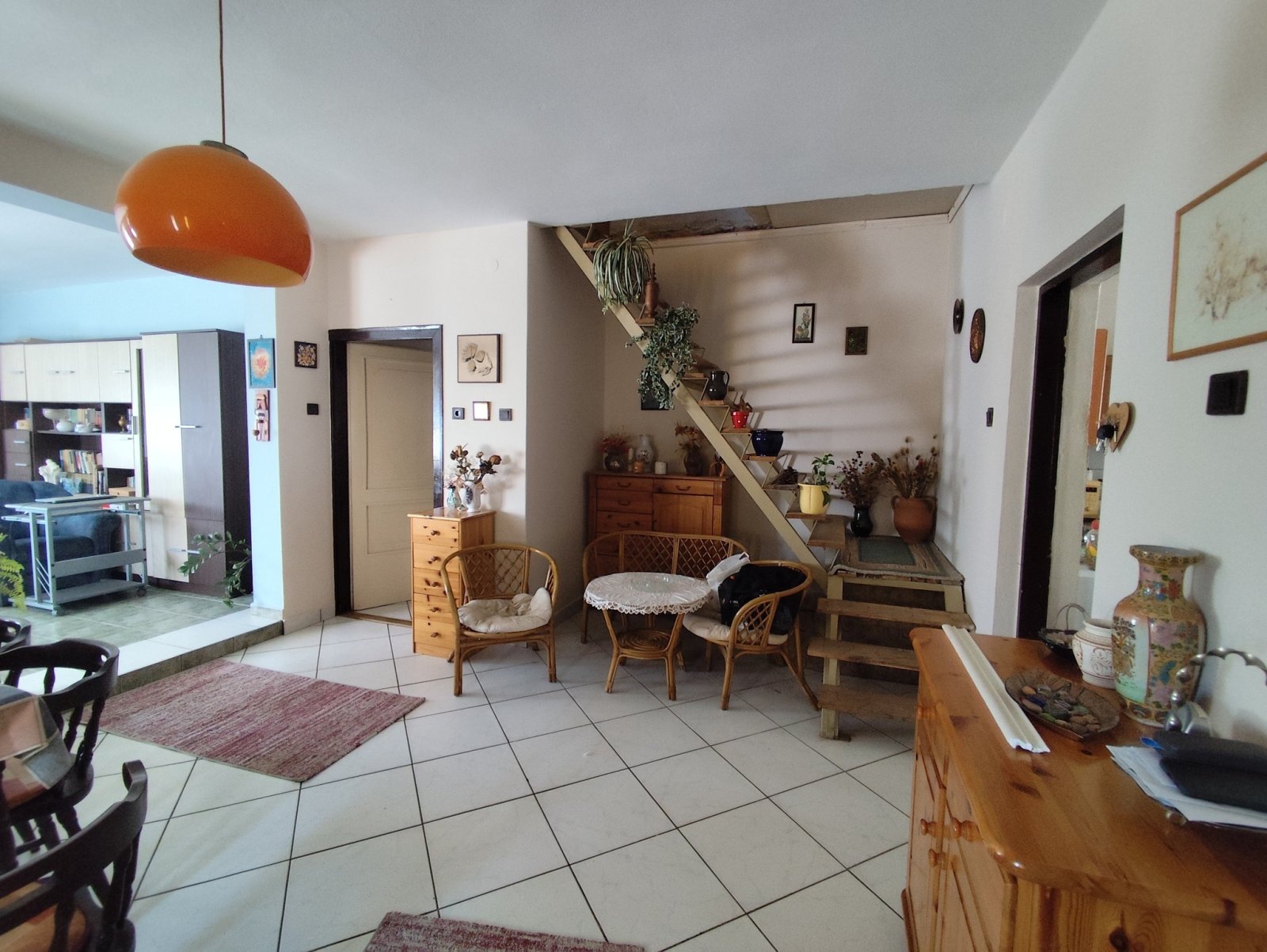Welcome to a spacious, bright family home that combines high-quality living on the ground floor with additional expansion potential in the attic. The ground floor offers two comfortable bedrooms, a very spacious living room, a huge dining area, a large kitchen, a pantry, a garage, a daylight bathroom with a tub and shower, and a separate toilet. The wood-fired central heating with radiators and a fireplace provide cozy warmth. An additional living space of approximately 80 m² has already been created in the attic – ideal for guests, a home office, or a second generation family.