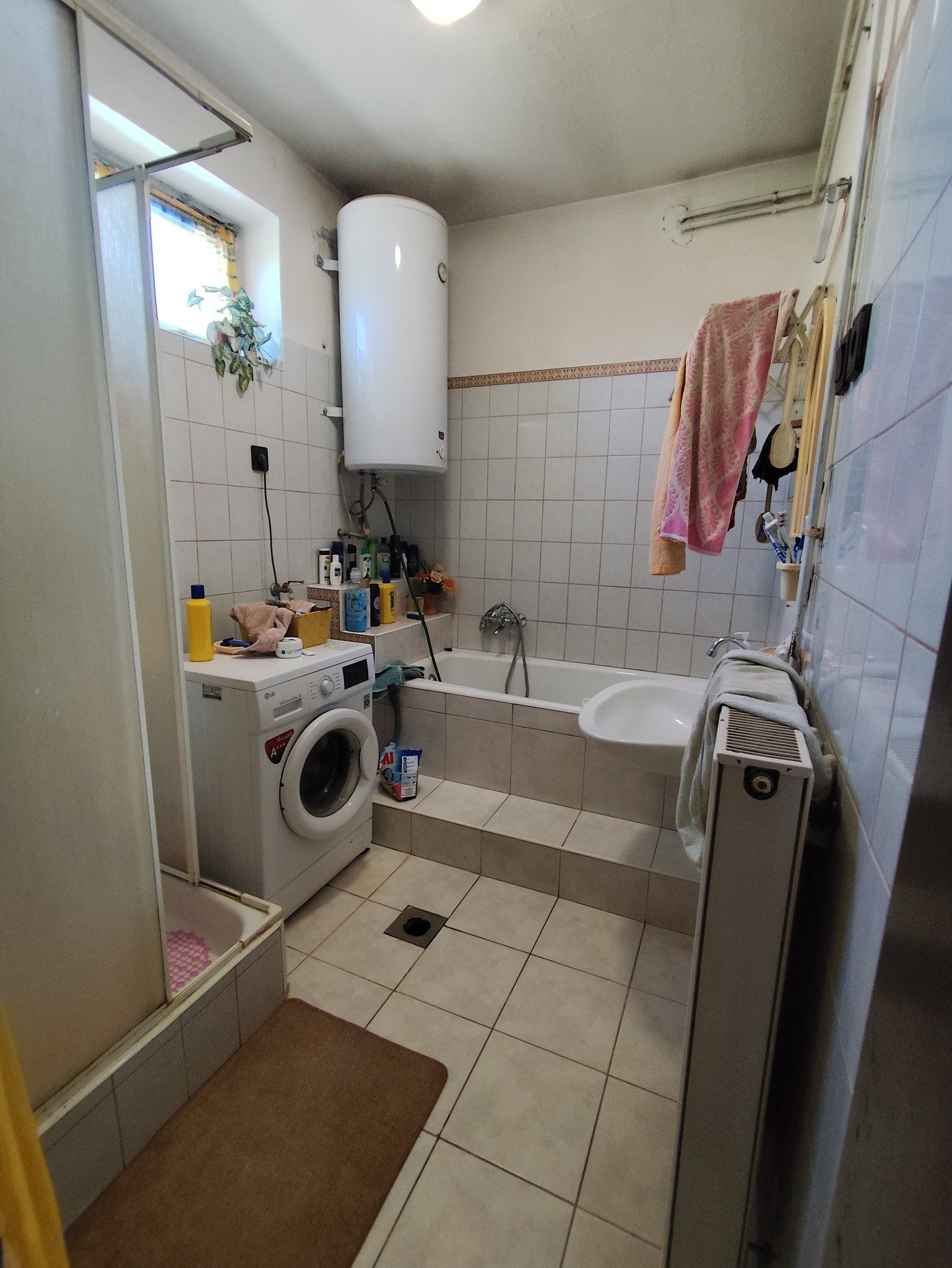 Central heating (wood) + fireplace, garage, terrace, partially furnished