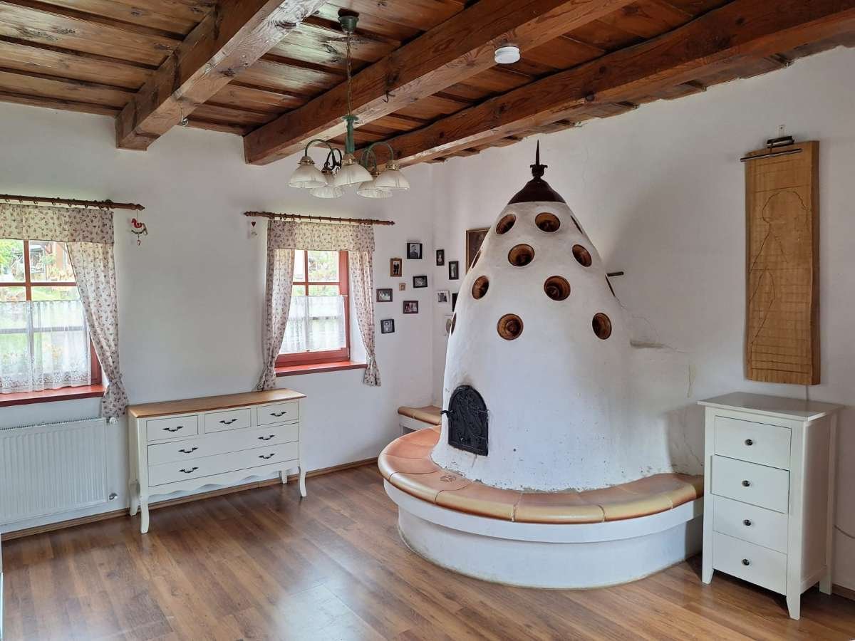 At the west end of the hallway, you enter a larger room. This is where the jewel of the house is located: an oven designed by a ceramic artist and decorated with old Hungarian motifs, which serves not only as a heater but also for preparing baked goods.