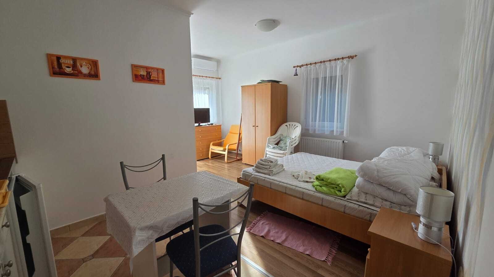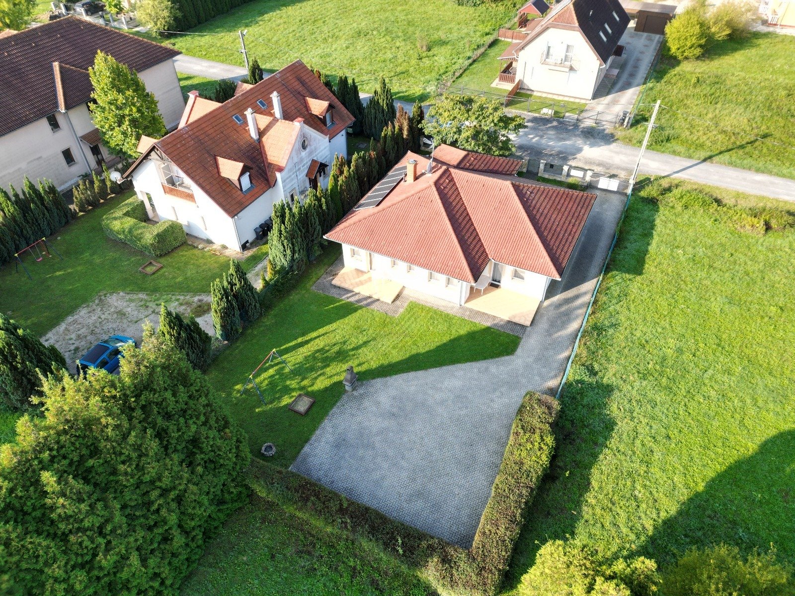 The construction was carried out by a technical manager using POROTHERM bricks, with additional thermal insulation (5 cm), high-quality PVC windows including shutters and insect screens. The equipment includes three independent heating circuits with thermostats, radiator heating, air conditioning units installed in all rooms for cooling and heating, and a TV connection in every room. A photovoltaic system (2.5 kW) ensures electricity-free operation, including for the air conditioning units.