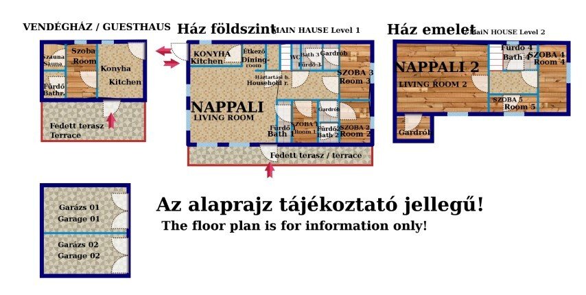 All buildings are built of brick and have tiled roofs. The windows and doors are modern, and there are a total of seven inverter air conditioners in the house and guest house. The cladding and windows are uniform, high-quality, and neither chipped nor cracked! The tiled rooms on the ground floor are heated by underfloor heating, and the rooms have radiators. A modern Vailant gas boiler provides heating and hot water. All plumbing is present. A remote monitoring system is in operation. The garages and entrance gate are remote-controlled.