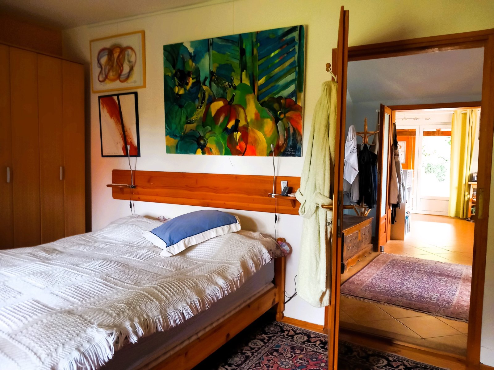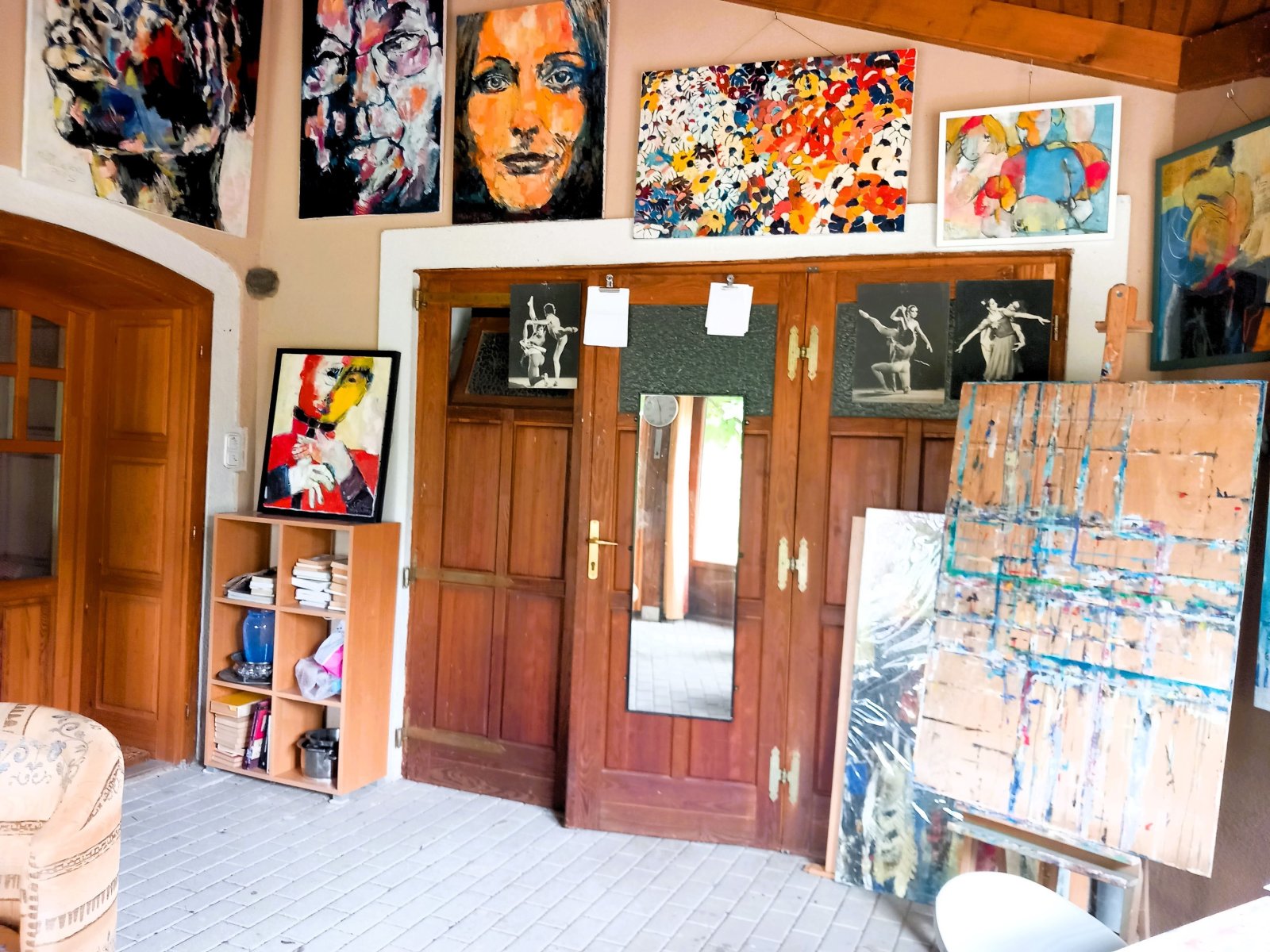 The rooms on the lower floor include a spacious double bedroom with terrace access, a bathroom with shower, a studio, and storage rooms, which may also have other functions in the future. A sturdy, comfortable wooden staircase leads to the upper floor, where there is a spacious living room with double glass doors, a cozy hallway, a spacious bedroom, a bathroom with bathtub, and an eat-in kitchen.