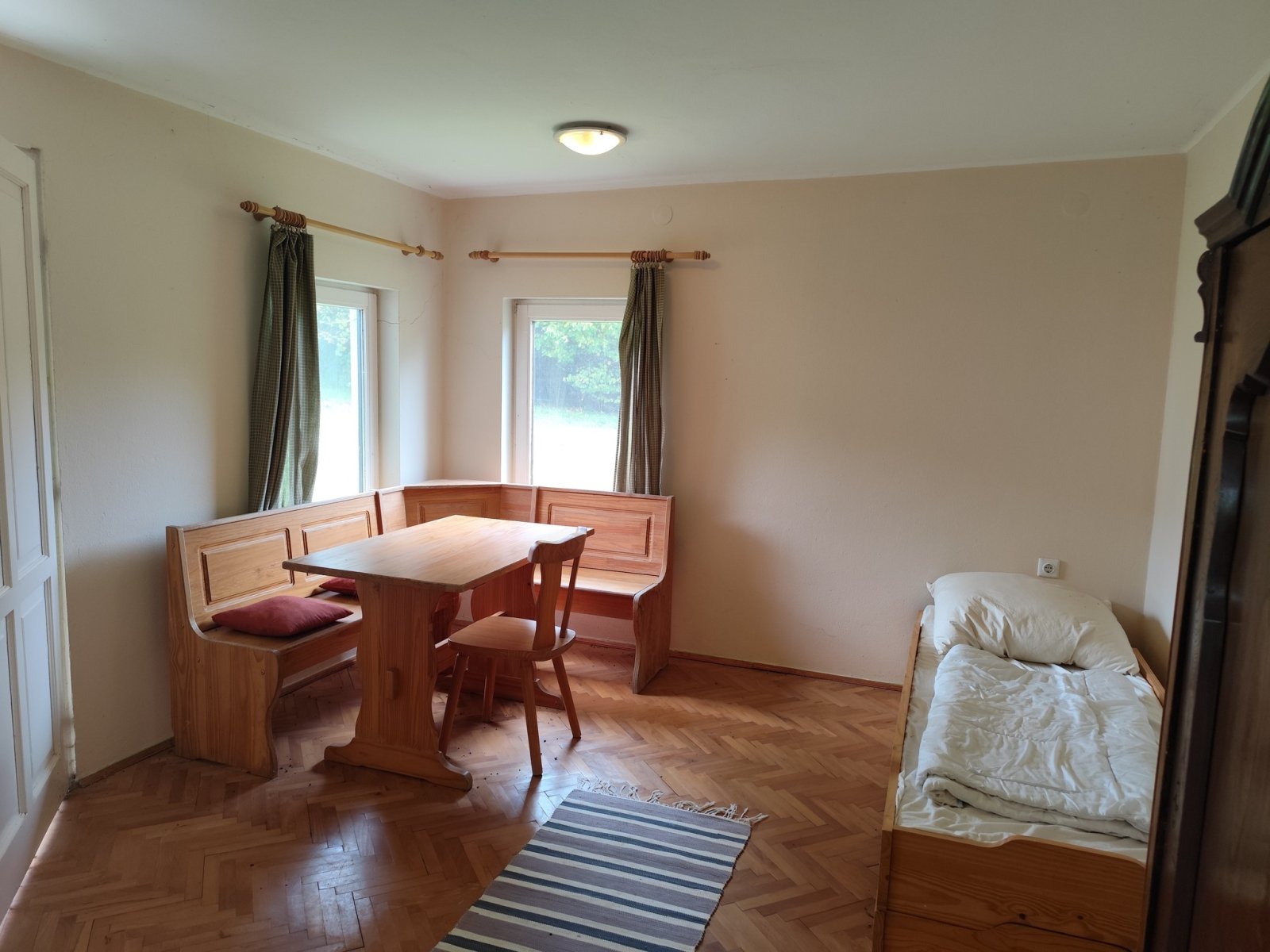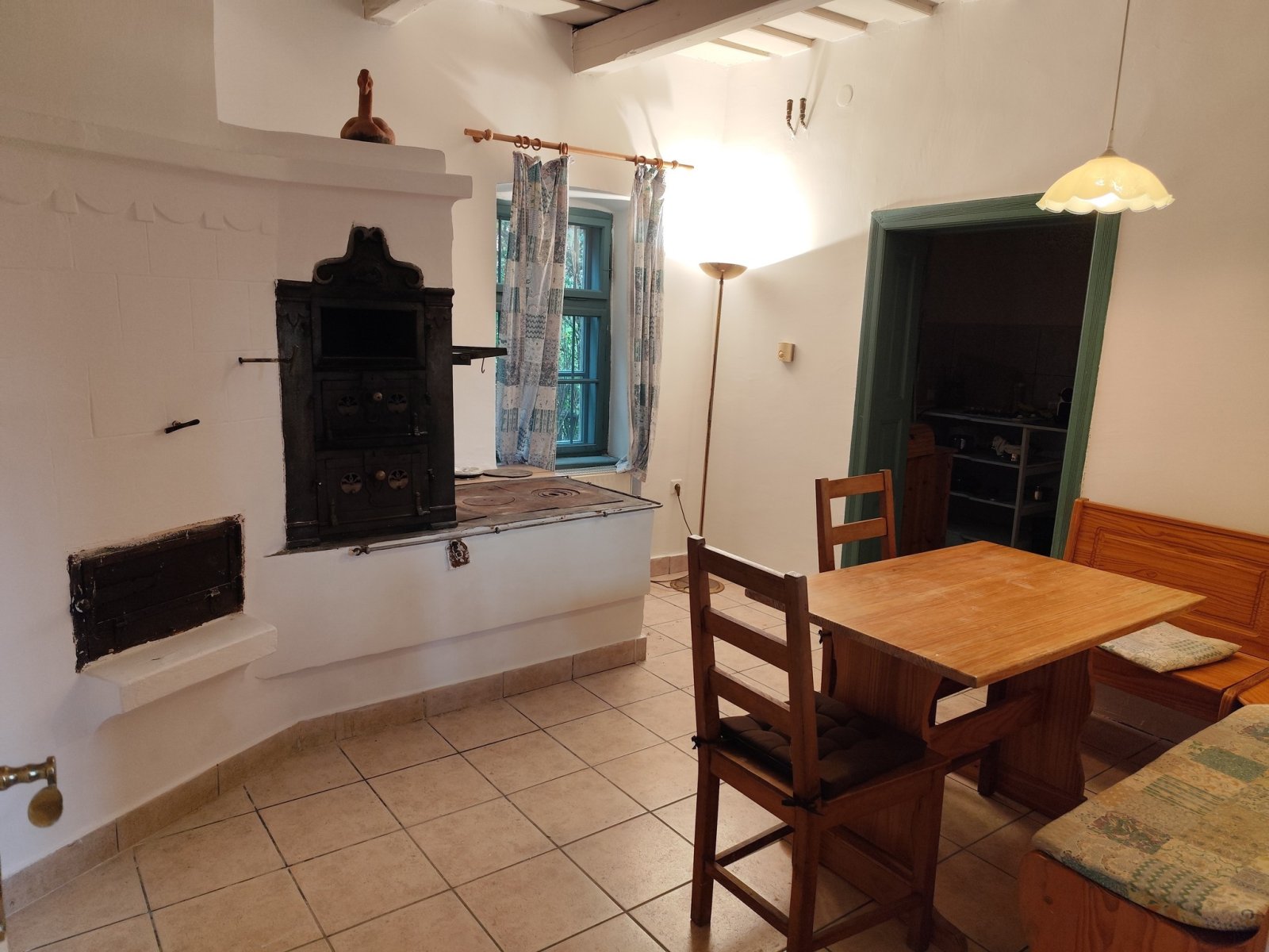 The two rooms are heated by a cozy tiled stove, and a gas heating system with radiators ensures a pleasant temperature throughout the house, even in the winter months.