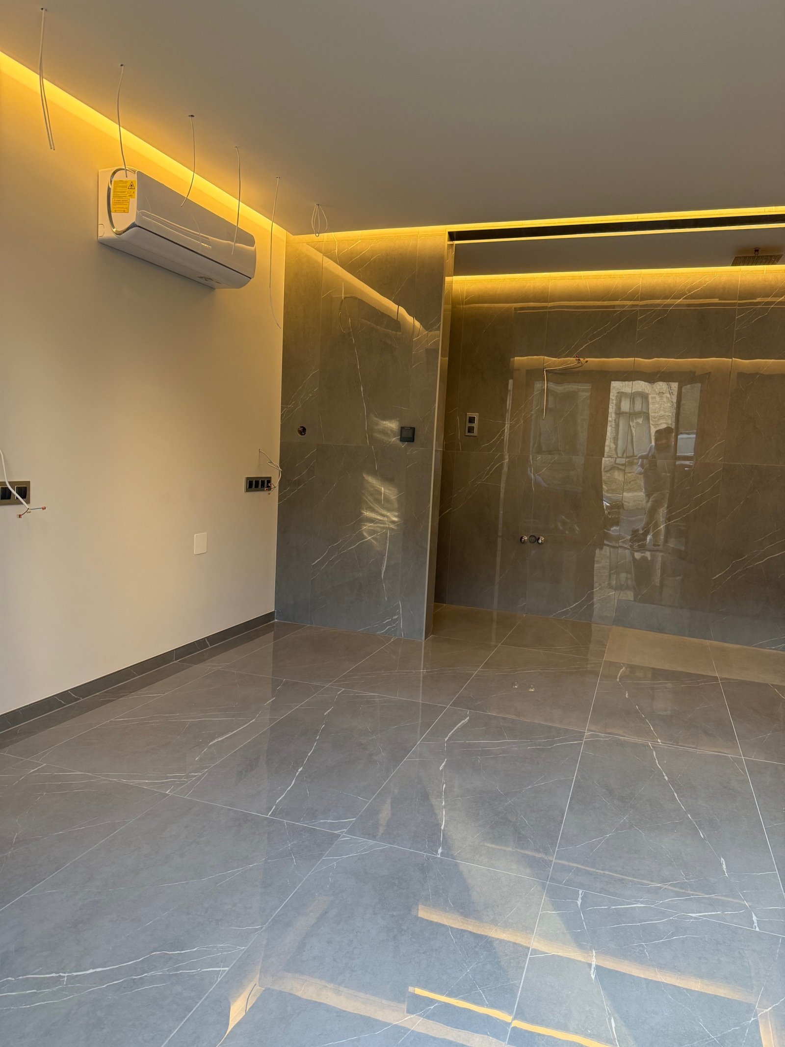 - The property features underfloor heating and a 3.5 kW GREE inverter air conditioning unit (heating/cooling).