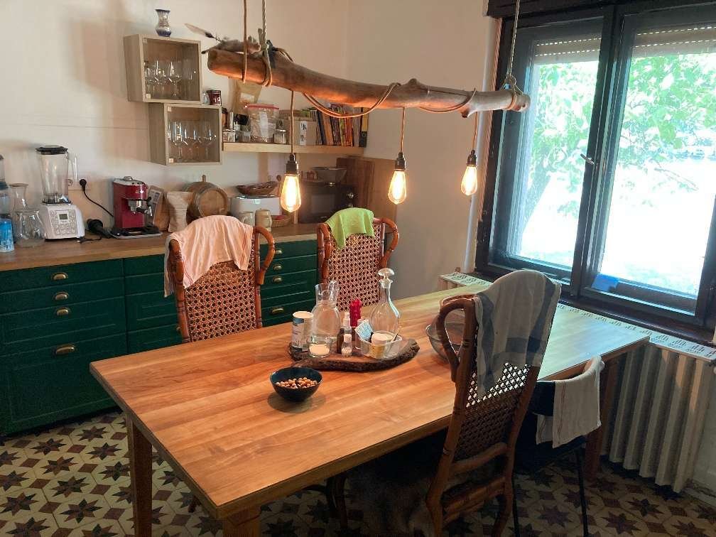 Large eat-in kitchen with new furniture (induction cooktop, oven, dishwasher), original, typical Hungarian tile flooring, as well as in the hallway (see photos)