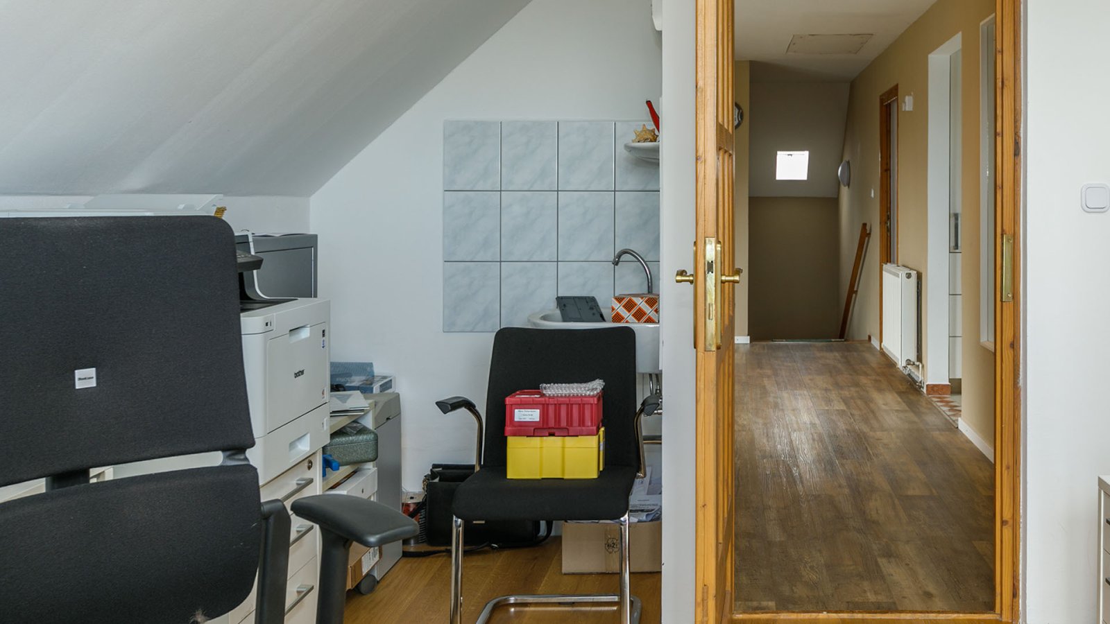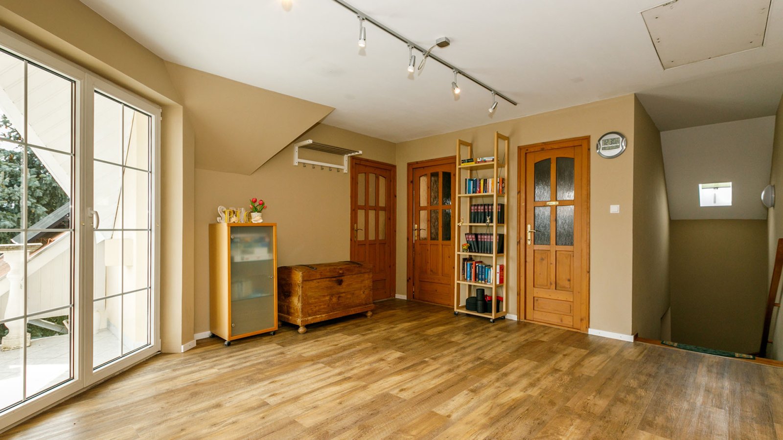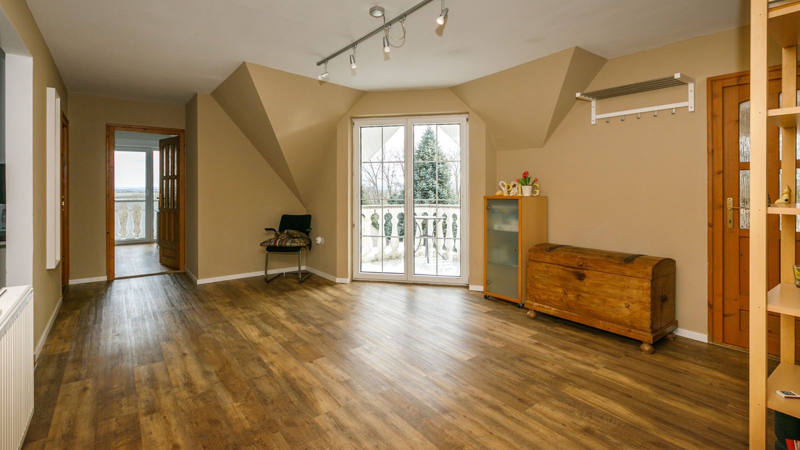 - On the upper floor there is a large hallway area with its own balcony - which can also be used as a small seminar area - and from which the following rooms lead off: