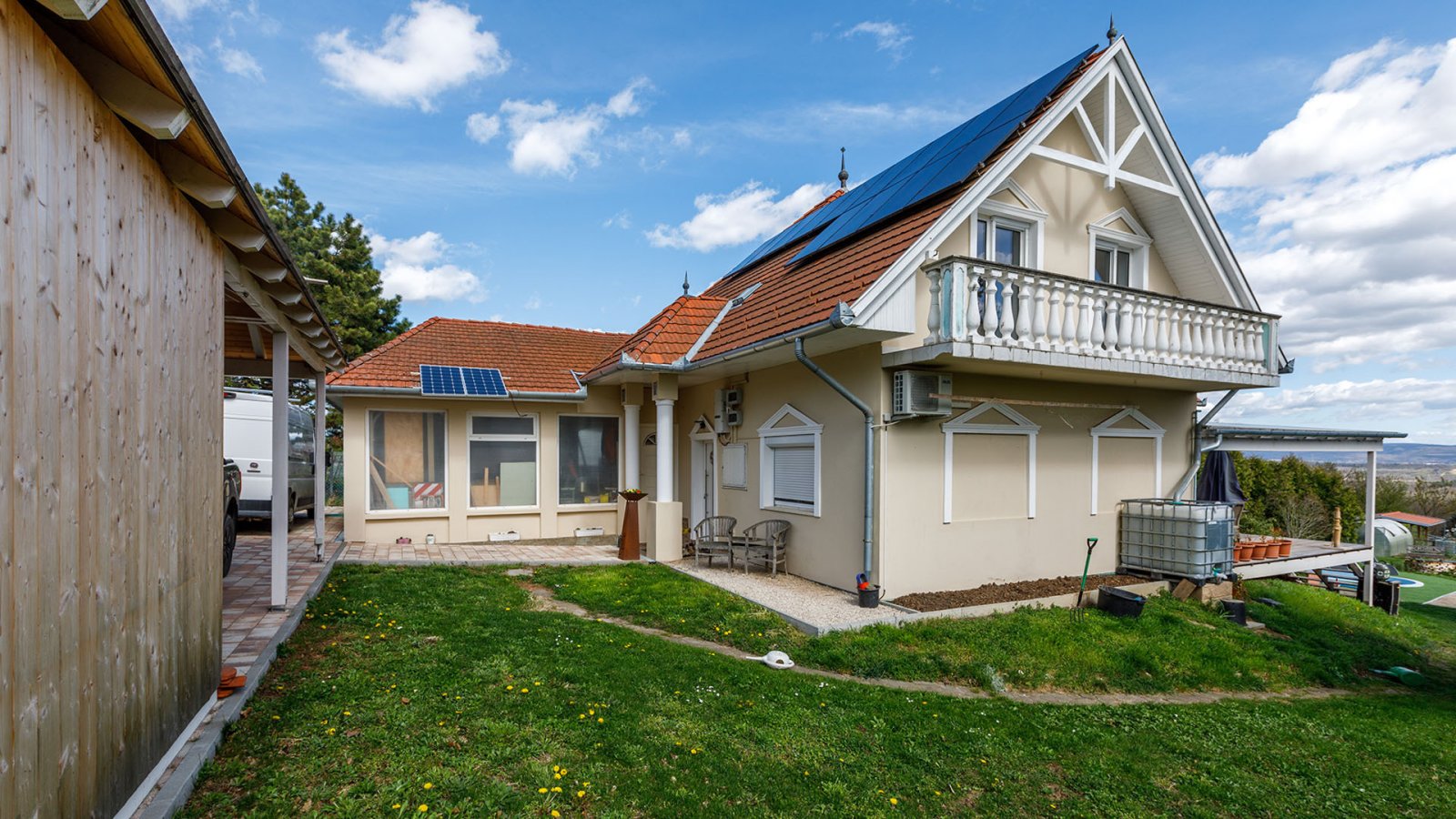 There are also solar panels for electricity supply and a well and a large rainwater cistern for water supply.
