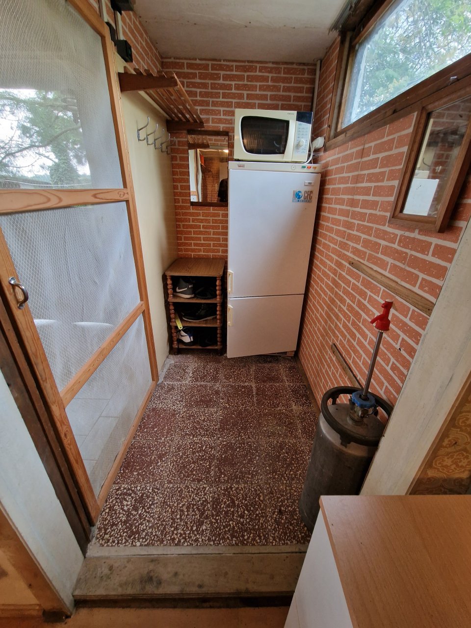 The house is simply built of a kind of timber frame construction on a solid foundation and is dry. It has no insulation and a fireplace is missing.
