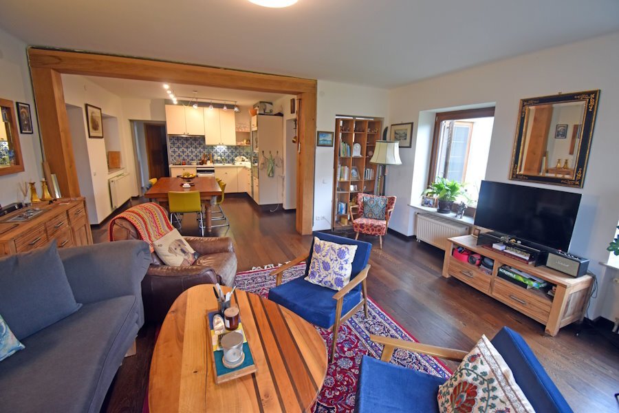 - a large living room (approx. 40 m²) with a kitchen and dining area