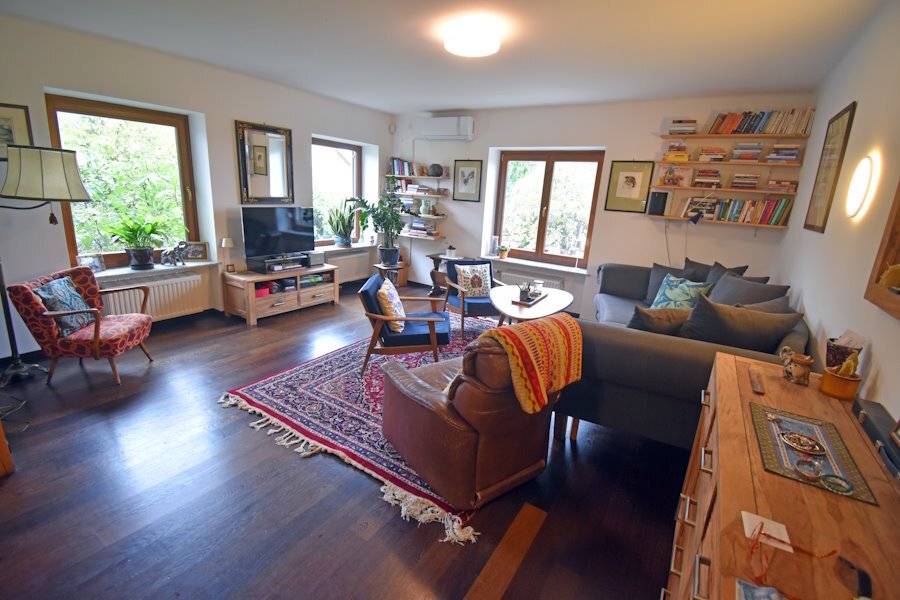 - the living room also opens onto a cozy, 10 m² covered terrace with a lovely view of the garden.