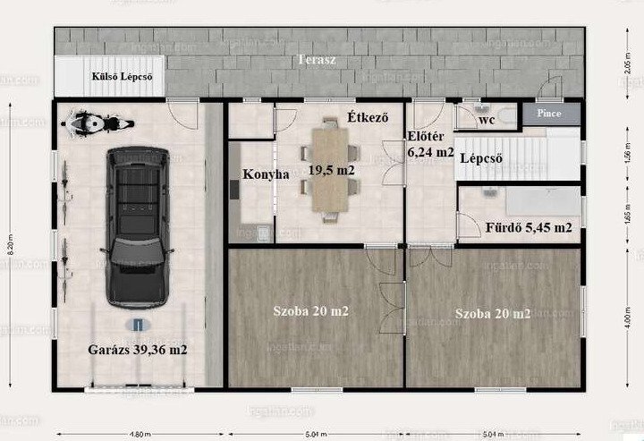 Spacious terrace: A 39 m² terrace, accessible from the upper floor and via an external staircase – ideal for relaxing outdoors.