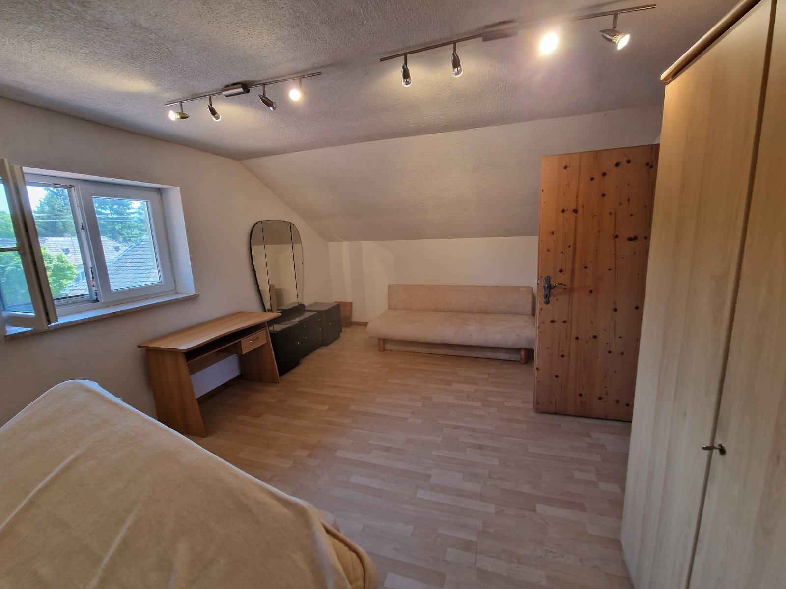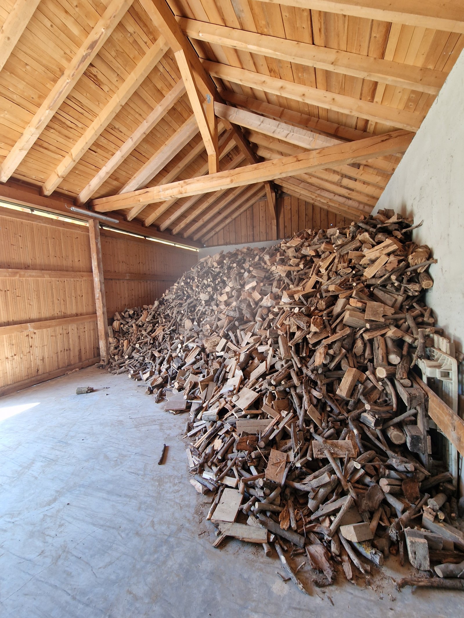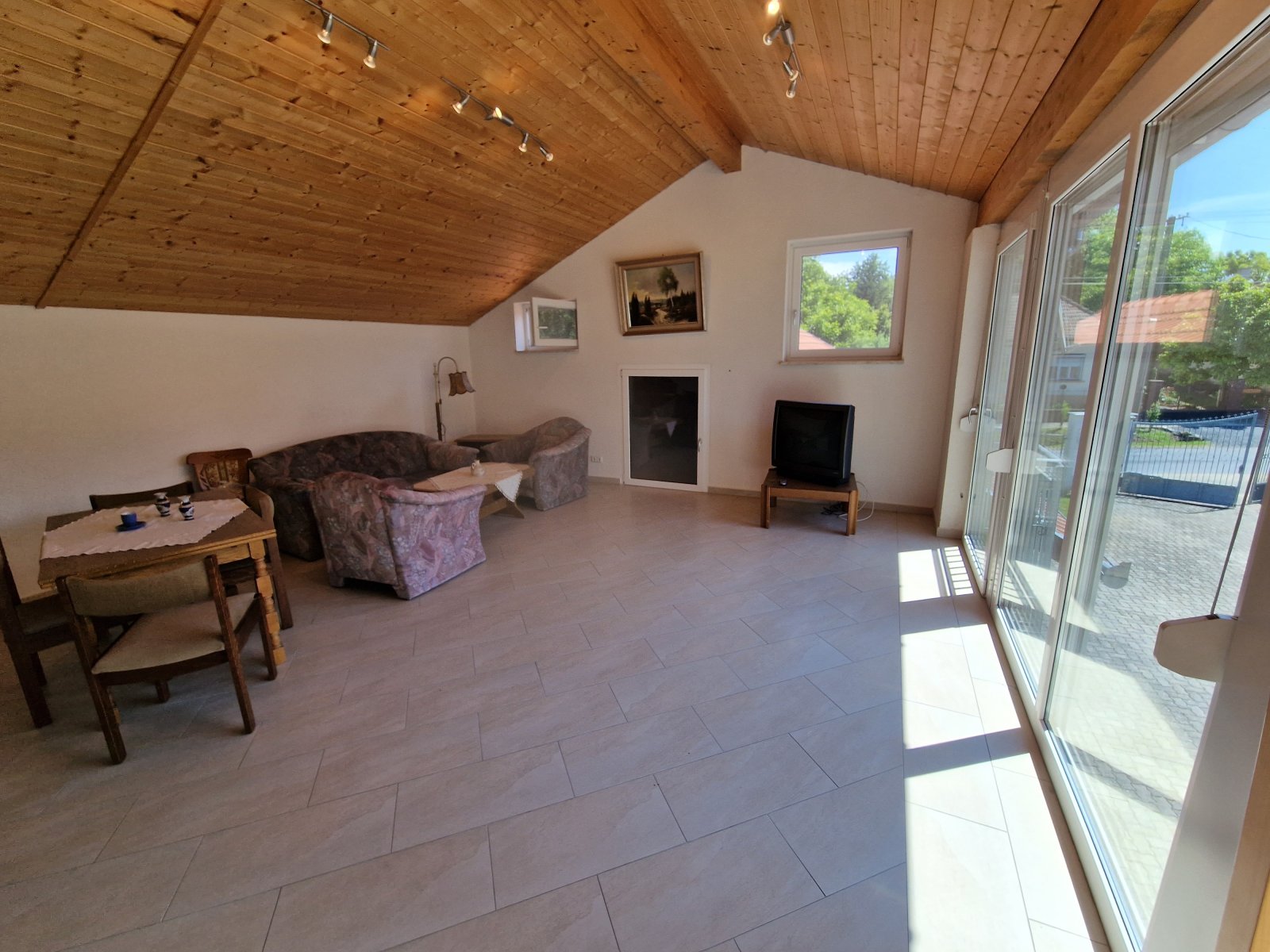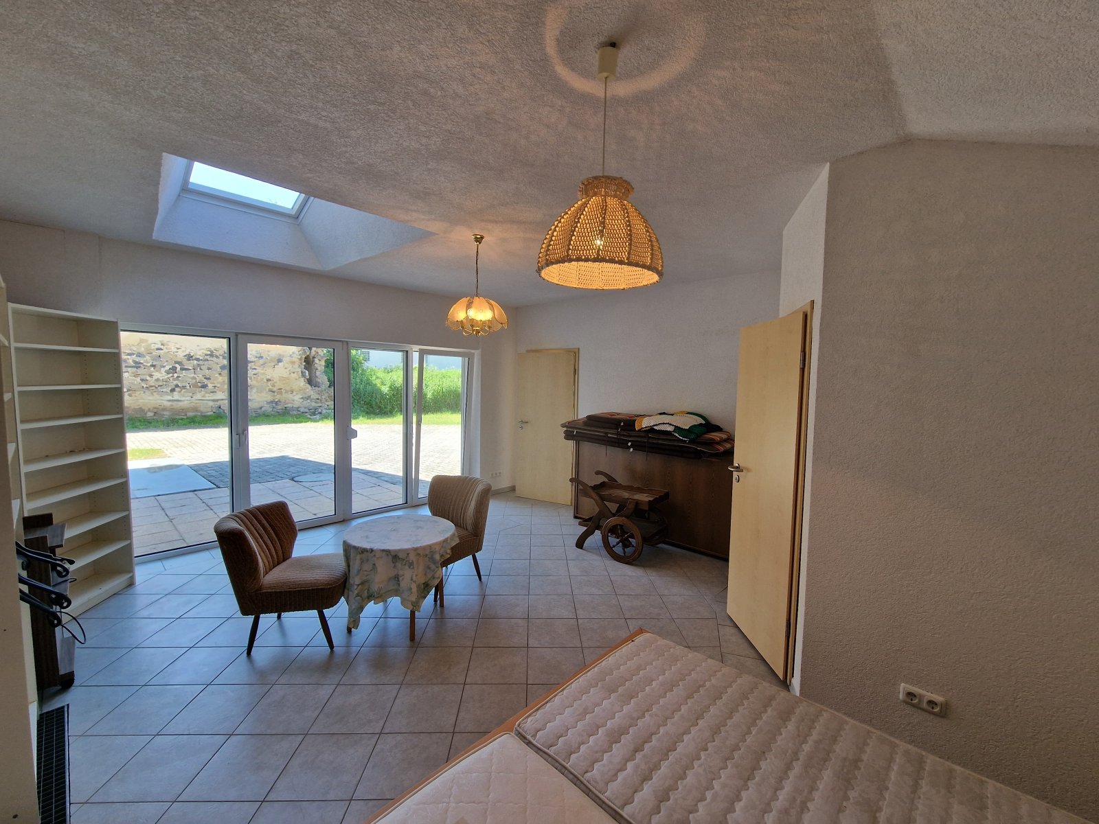 Una escalera de madera conduce a 2 habitaciones más y a un aseo en el ático. Toda la casa tiene un sótano de aprox. En el sótano hay varias habitaciones, una sala de calderas y un almacén de leña con bajada de leña desde el patio. Actualmente se utiliza como almacén de madera una dependencia de ladrillo con suelo de hormigón de unos 65 m². La propiedad incluye un garaje doble y otro garaje con trastero y entrada a la casa.