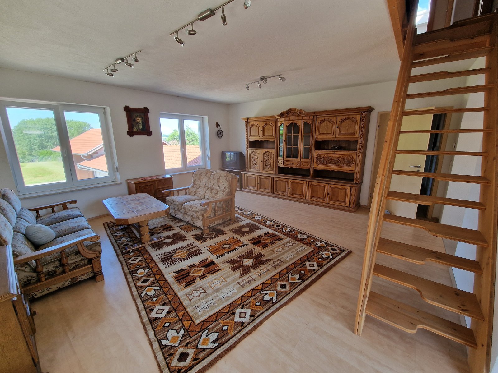 En el primer piso se encuentra una tercera vivienda de aprox. 126 m² y otras 2 habitaciones a modo de dúplex de aprox. Esta unidad residencial consta de una sala de estar de aprox. 37 m², otra habitación, un dormitorio, una gran cocina comedor equipada con todos los electrodomésticos, una despensa, un baño con ducha y bañera, un aseo adicional y una terraza cubierta de aprox. Balcón de aprox. 8 m².