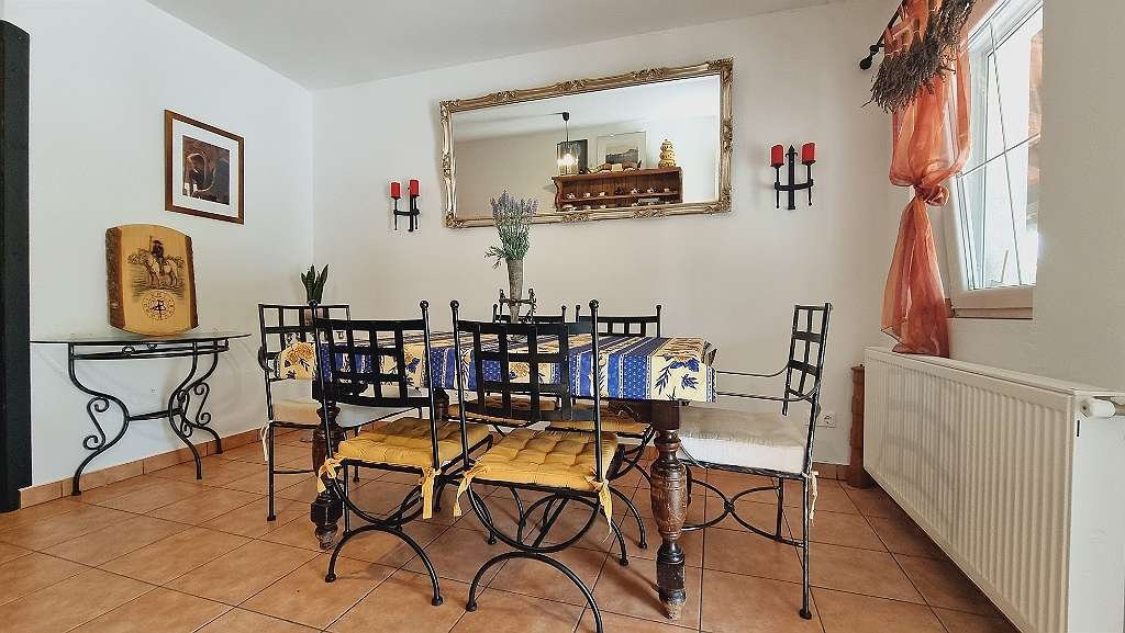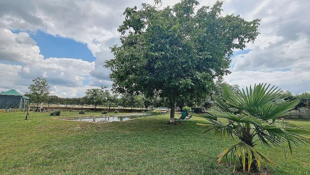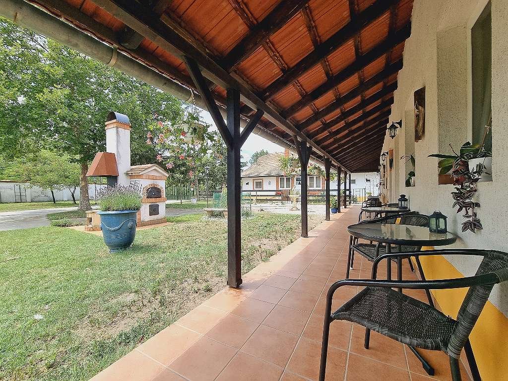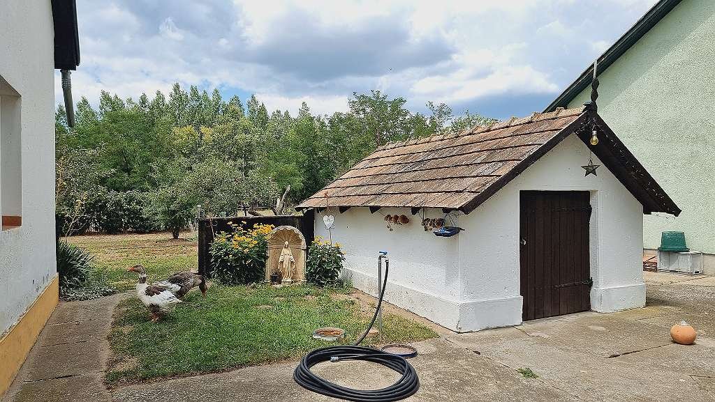 TV alemana y húngara, WIFI), terraza cubierta (una para propietarios y otra para invitados), terraza normal, plazas de aparcamiento cerradas, estanque, todo está vallado e iluminado, calefacción central de leña con radiadores, almacenamiento intermedio, caldera de 800 L (también puede ser calentado eléctricamente, también es adecuado para los paneles solares más tarde)