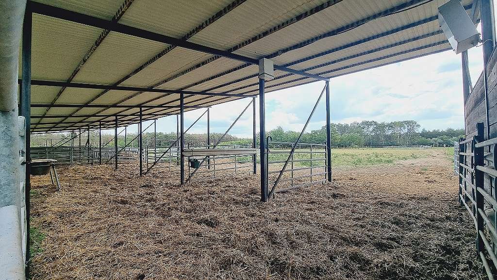 • Establo exterior de 32x8 metros con videovigilancia y paneles ajustables (actualmente se utiliza con vacas y caballos grises húngaros)